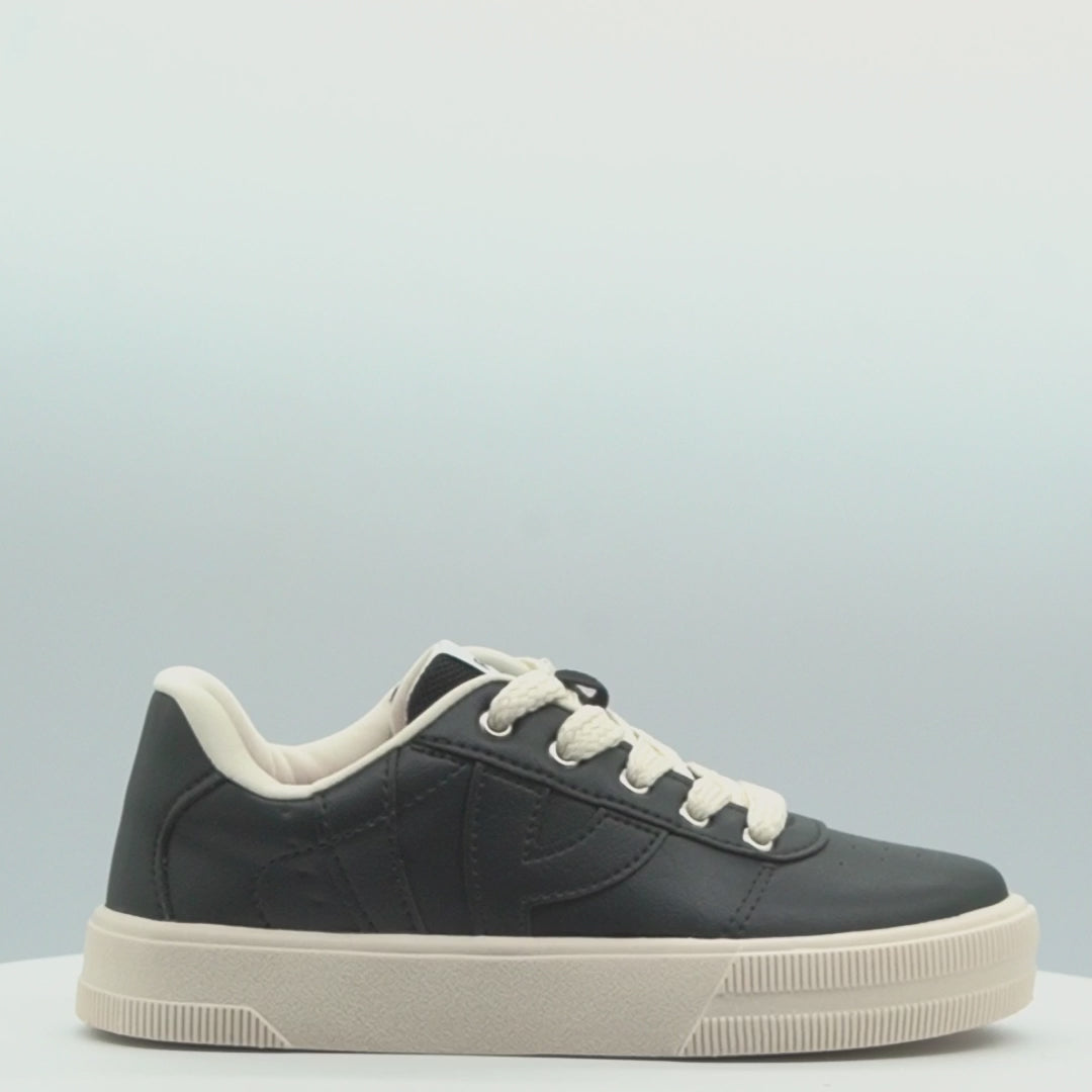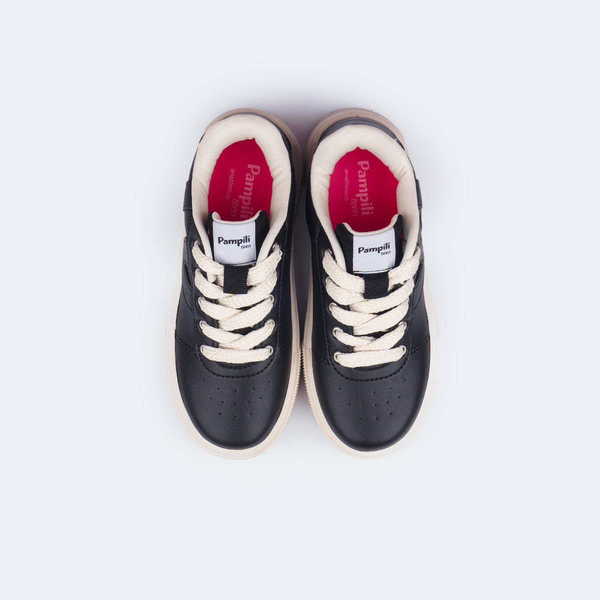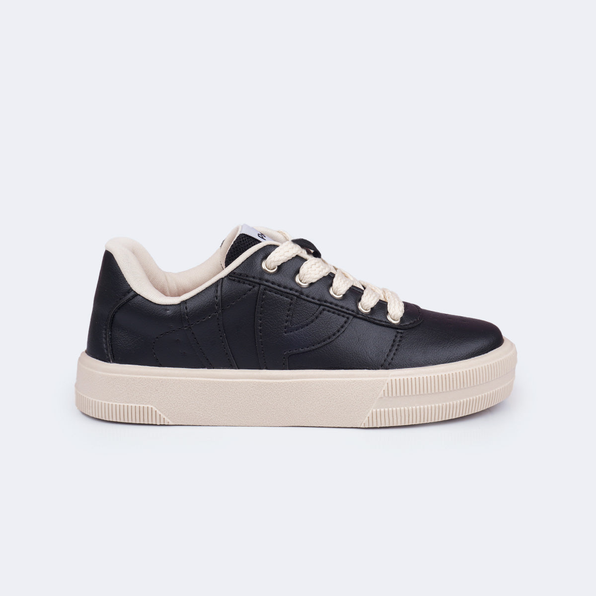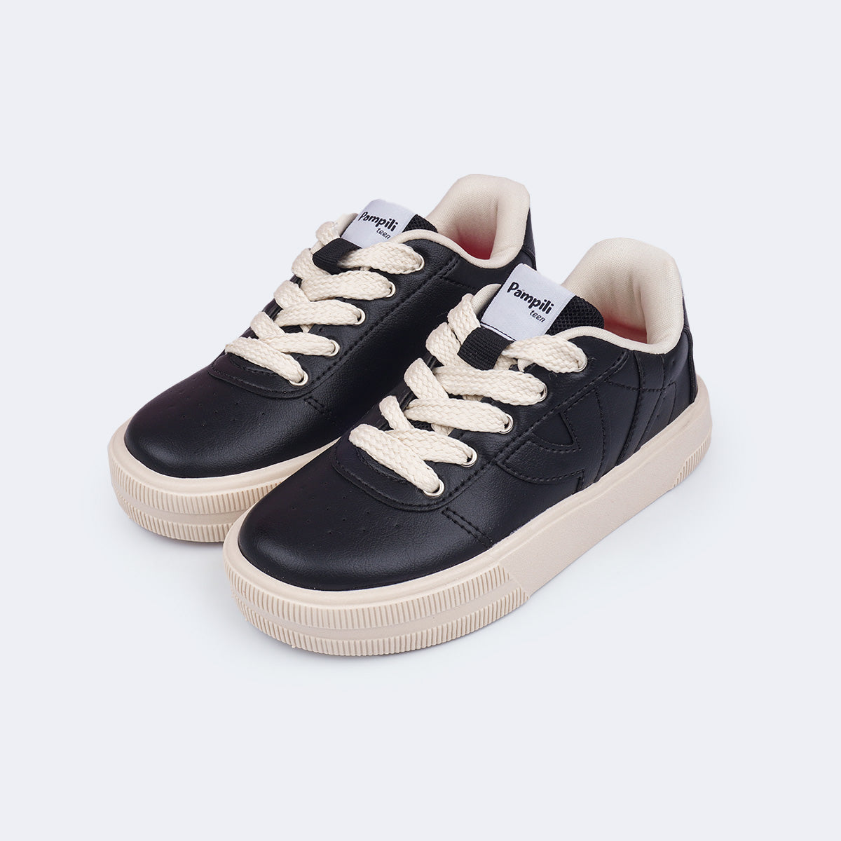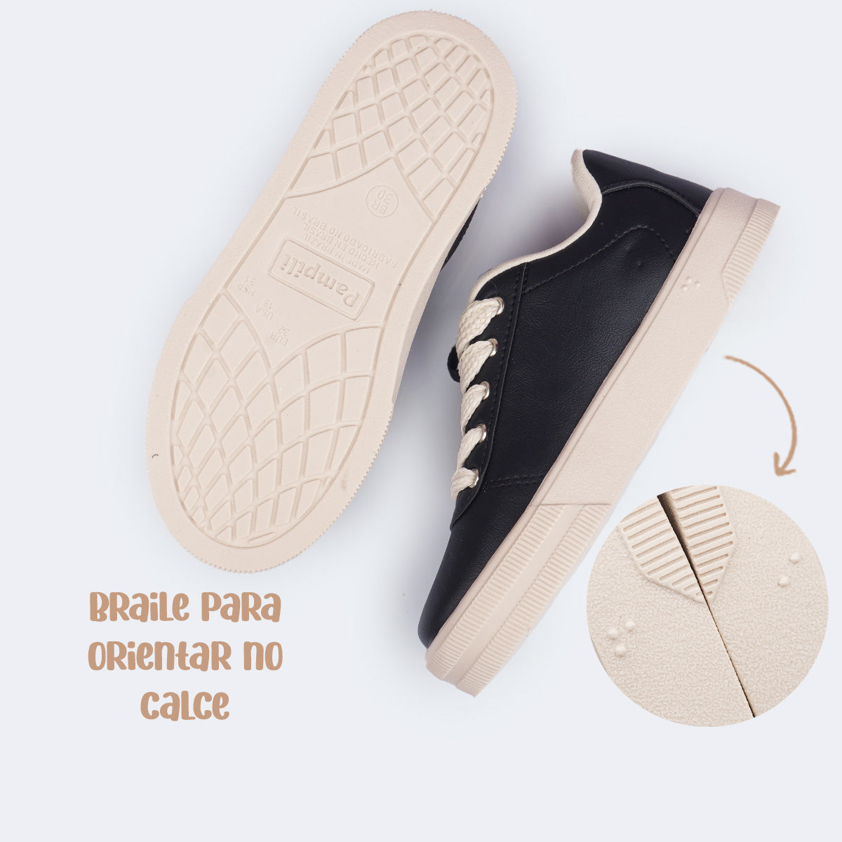 Cheio de personalidade, este tênis preto com detalhes na cor nude é perfeito para acompanhar as meninas nas produções mais despojadas do dia a dia.