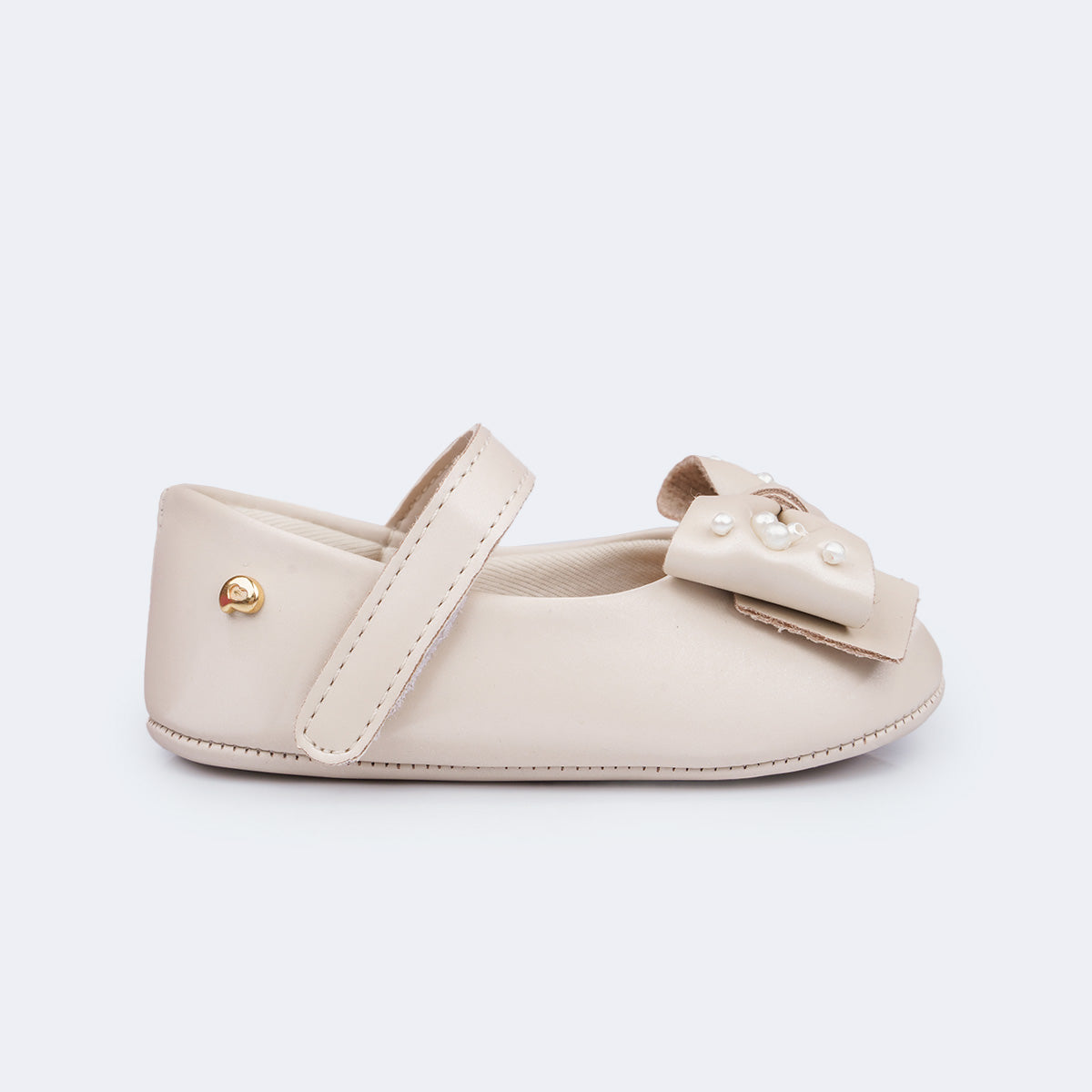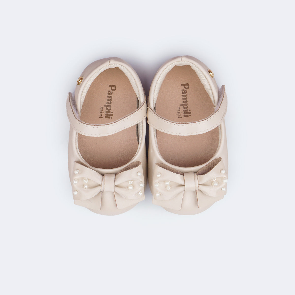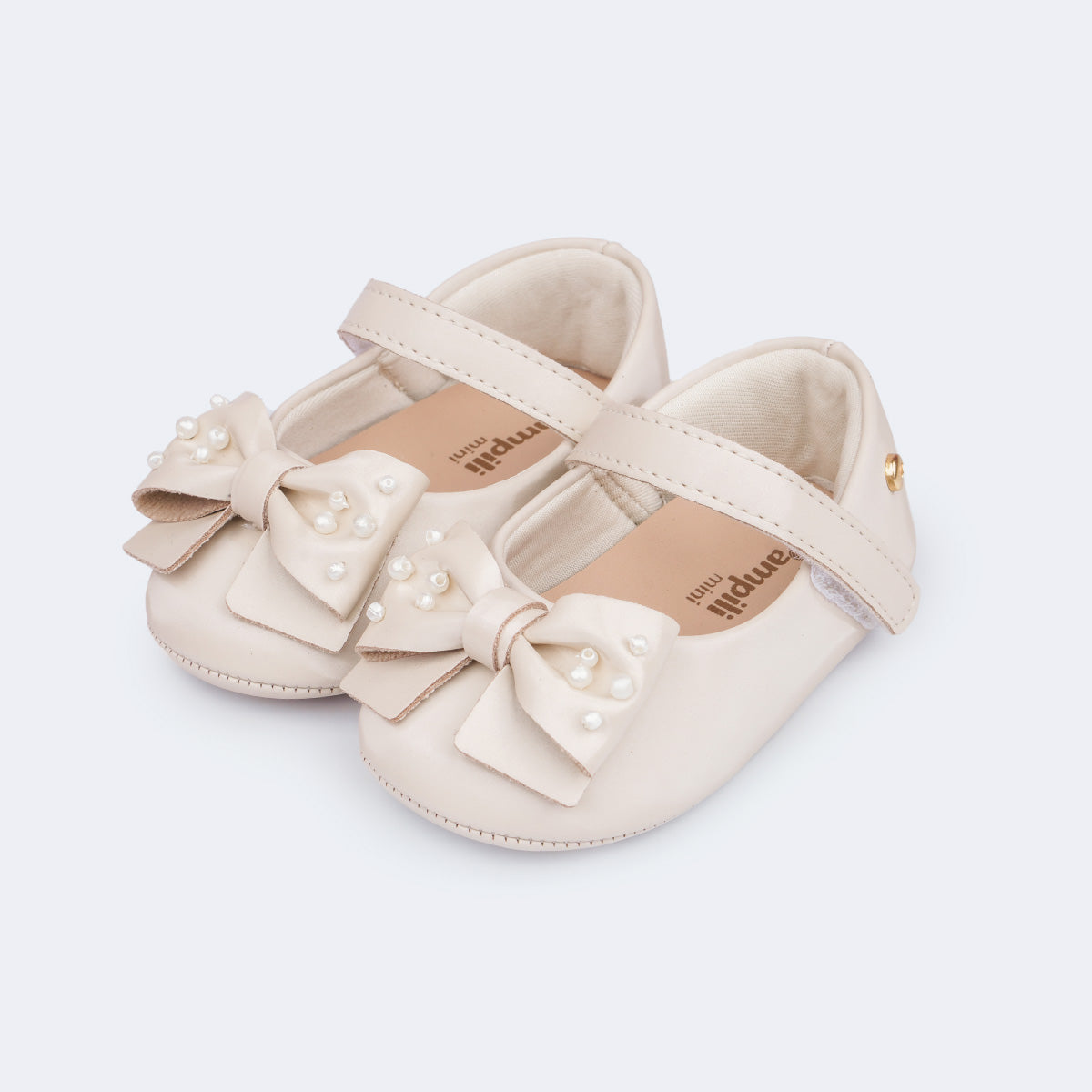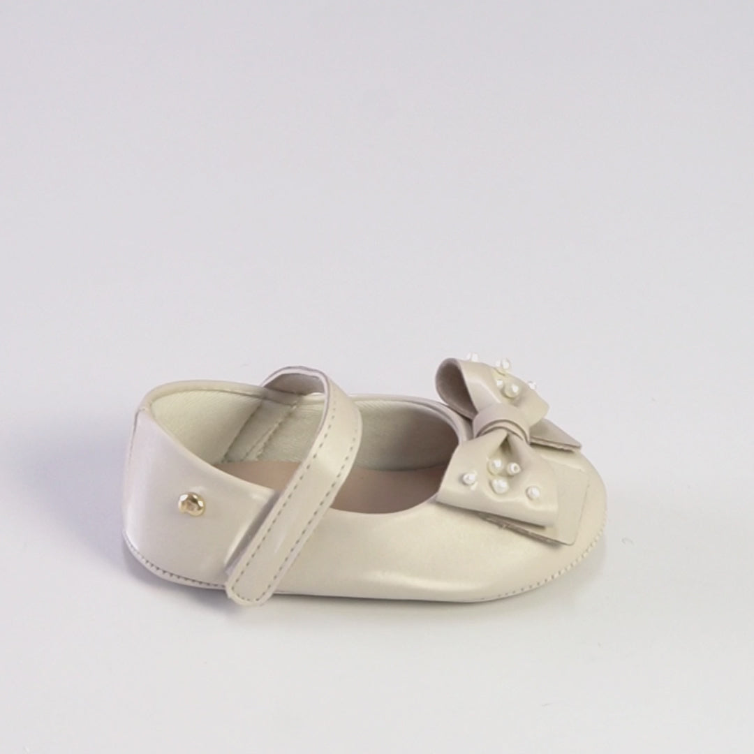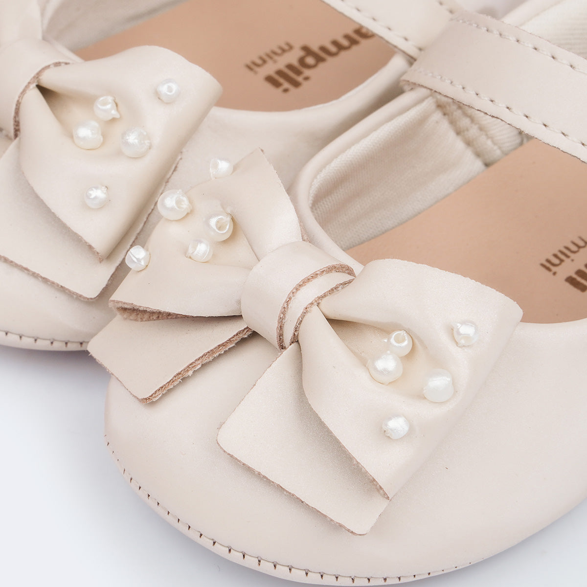 Sapato de Bebê Pampili Nina Laço com Pérolas Nude