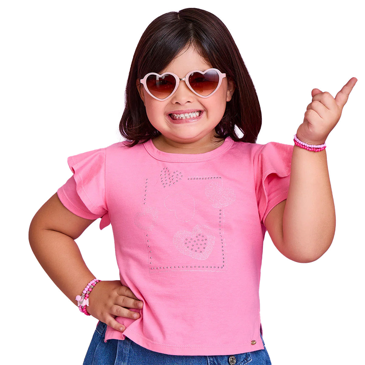 Camiseta infantil rosa é unanime no gosto das meninas, perfeita para montar looks delicados em qualquer ocasião.