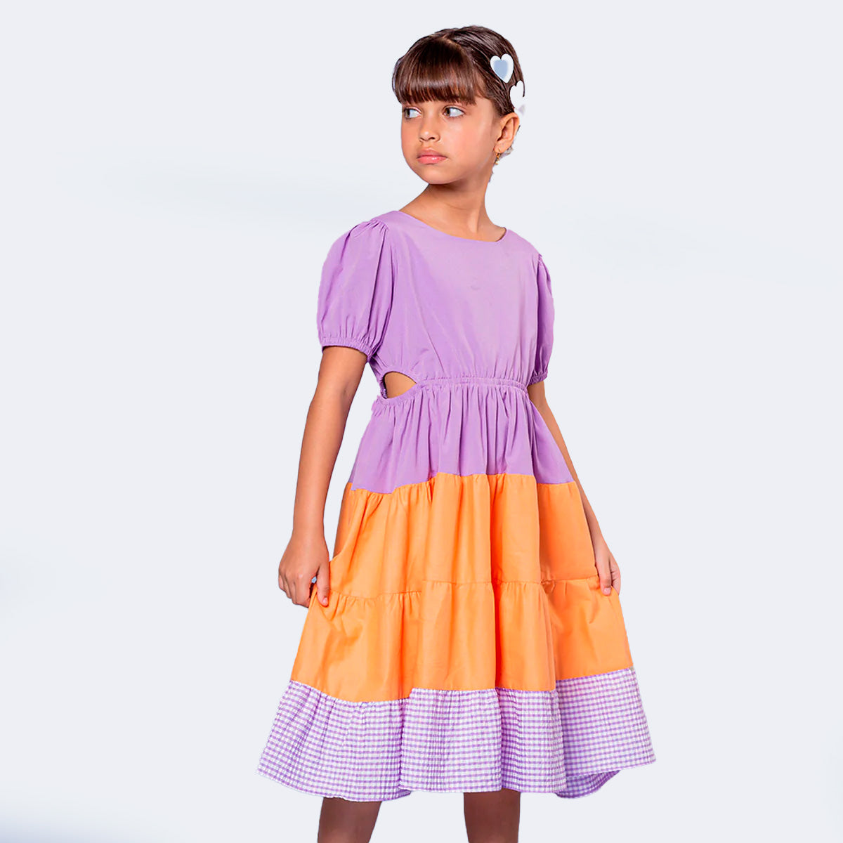 Vestido Infantil Bambollina Três Marias e Manga Bufante Laranja e Roxo