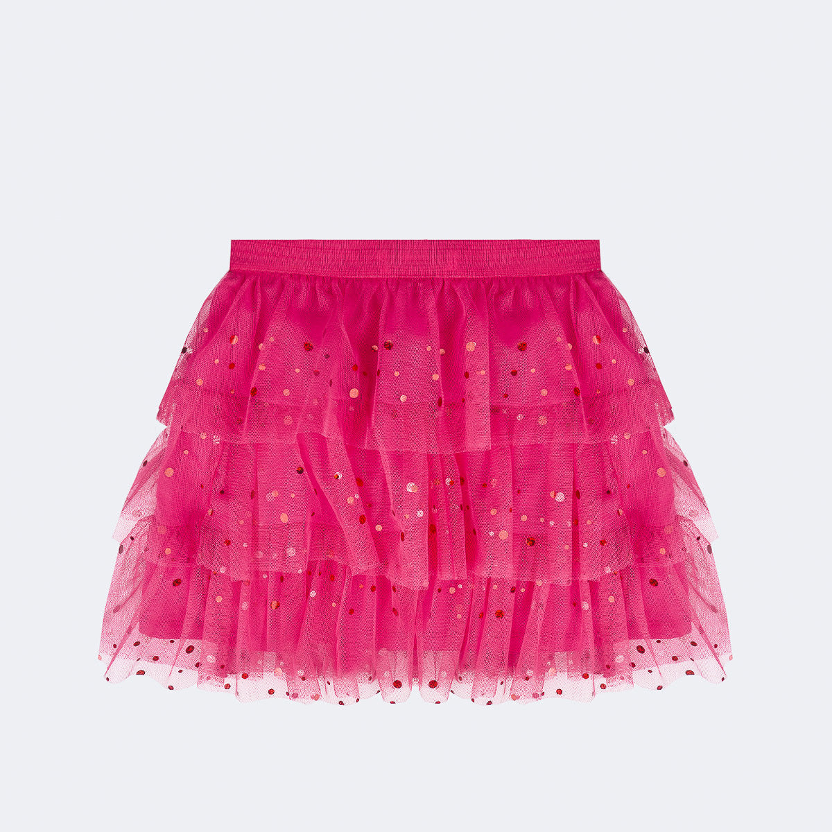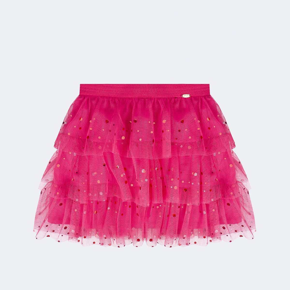 Delicada e alegre, esta saia pink de tule é perfeita para meninas que gostam de brilhar. O efeito de camadas com babadinhos esvoaçantes e poás metalizados cria um visual divertido e arrumadinho, ideal para ocasiões especiais. O cós com ajuste confortável garante liberdade de movimentos, enquanto o forro em algodão proporciona maciez e bem-estar. Uma peça versátil para transformar produções especiais e momentos inesquecíveis.