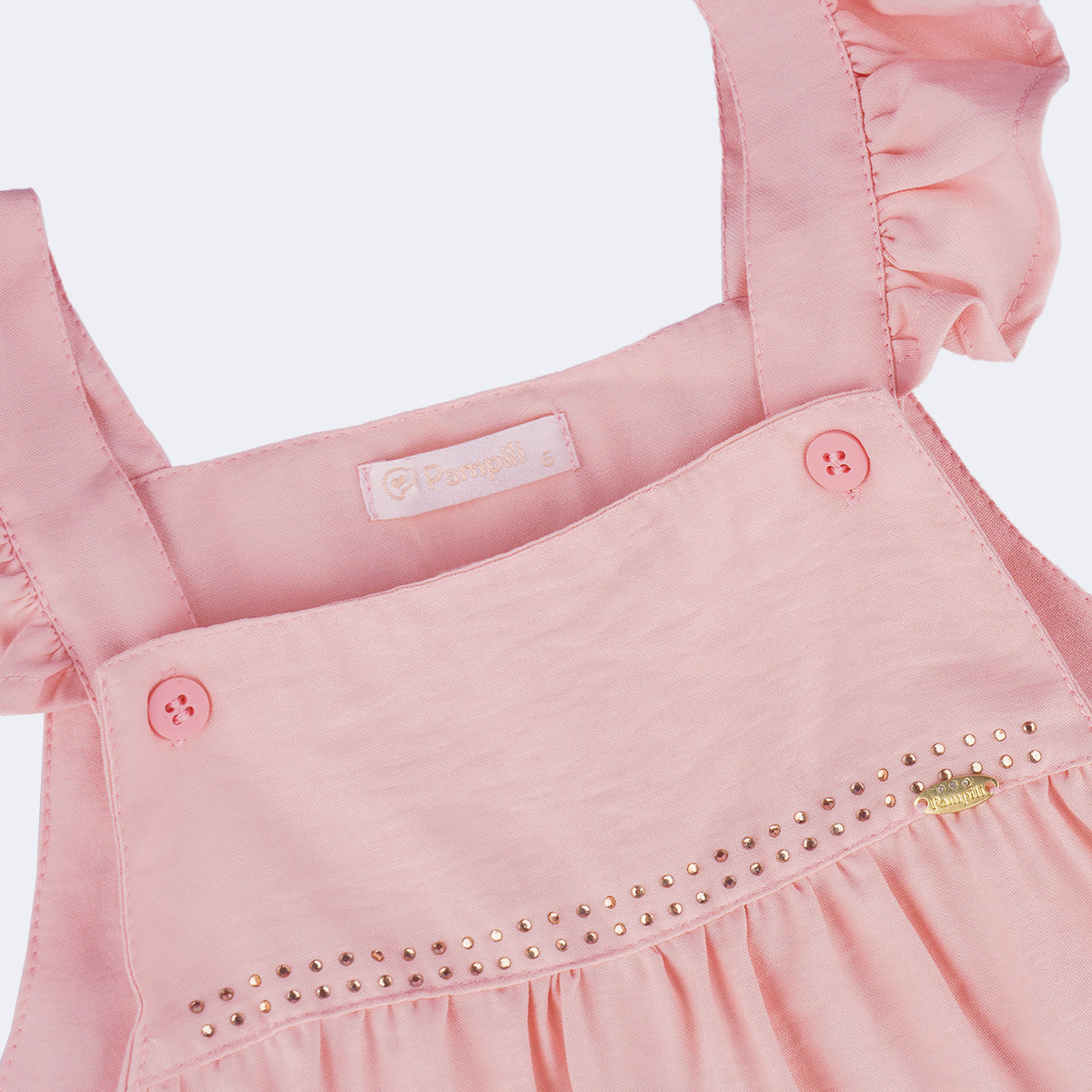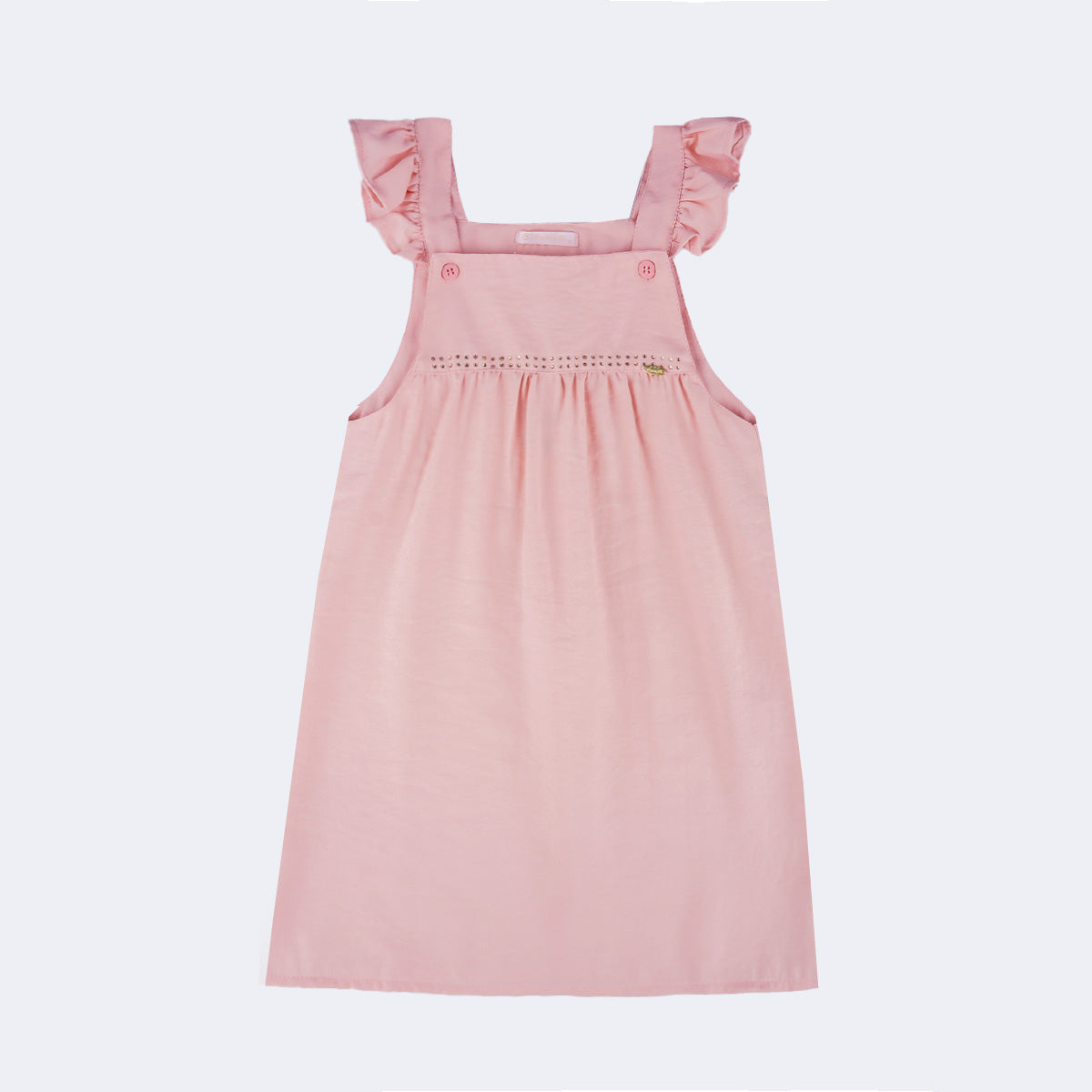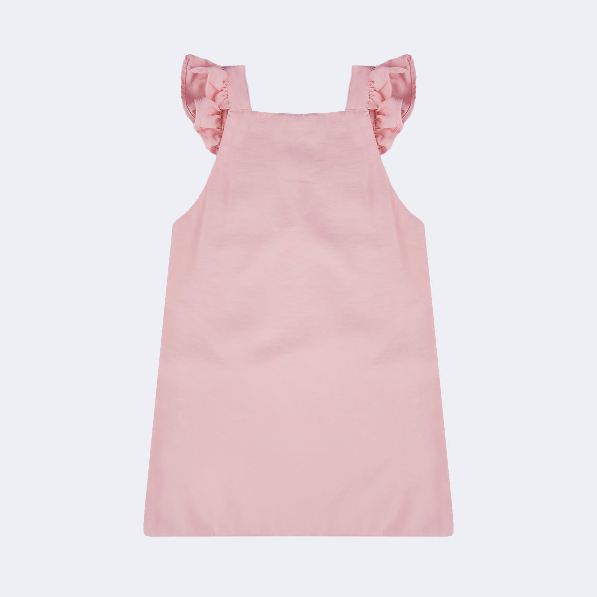 O vestido rosa com babados é a escolha perfeita para meninas que amam conforto e estilo em uma única peça! Confeccionado com tecido leve, com caimento suave e agradável, ideal para os dias mais quentes, o design conta com alças delicadamente franzidas, que formam um babado sutil nos ombros, trazendo um ar romântico e encantador à peça.