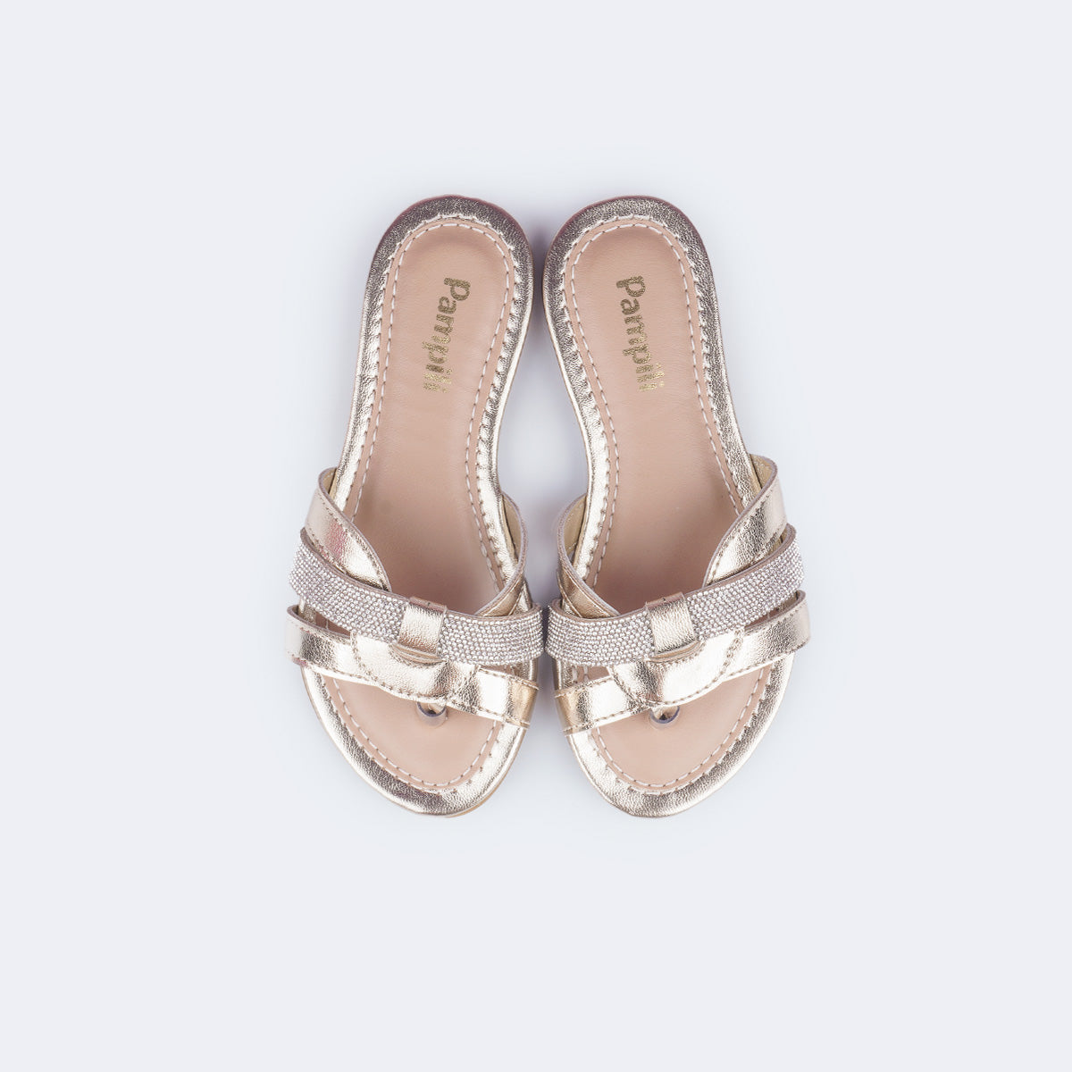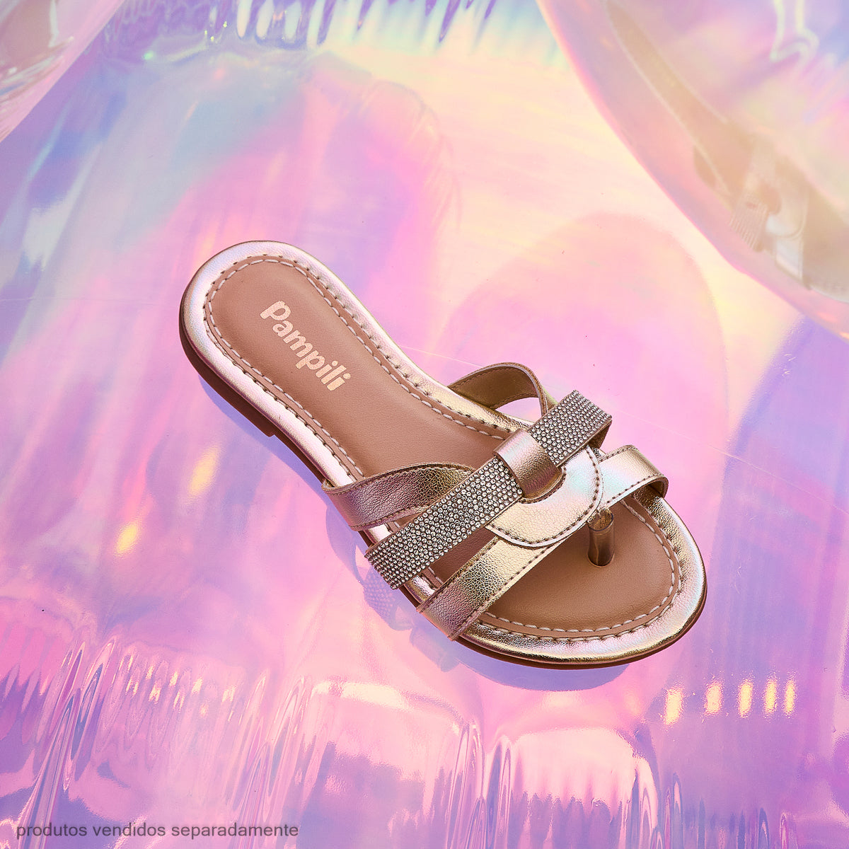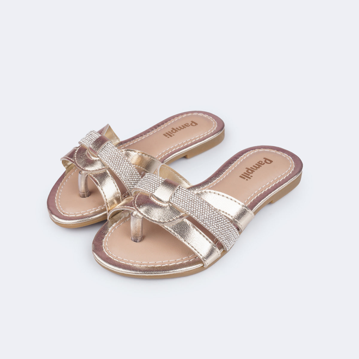 Sandália Rasteira Infantil Pampili Cherrie Tiras com Hotflix Dourada