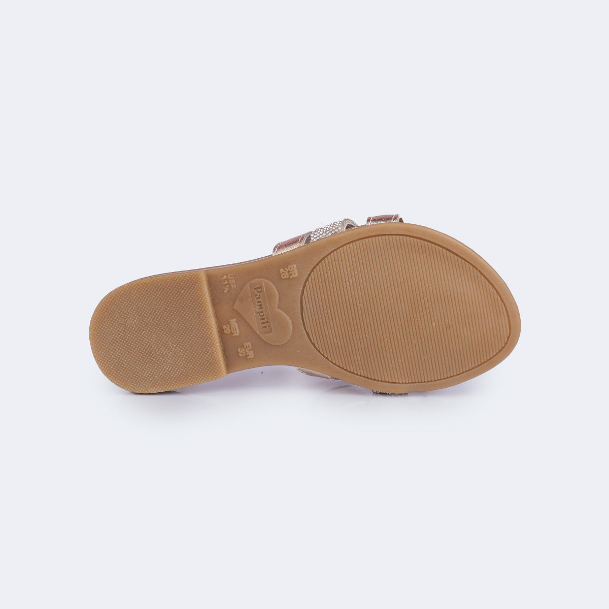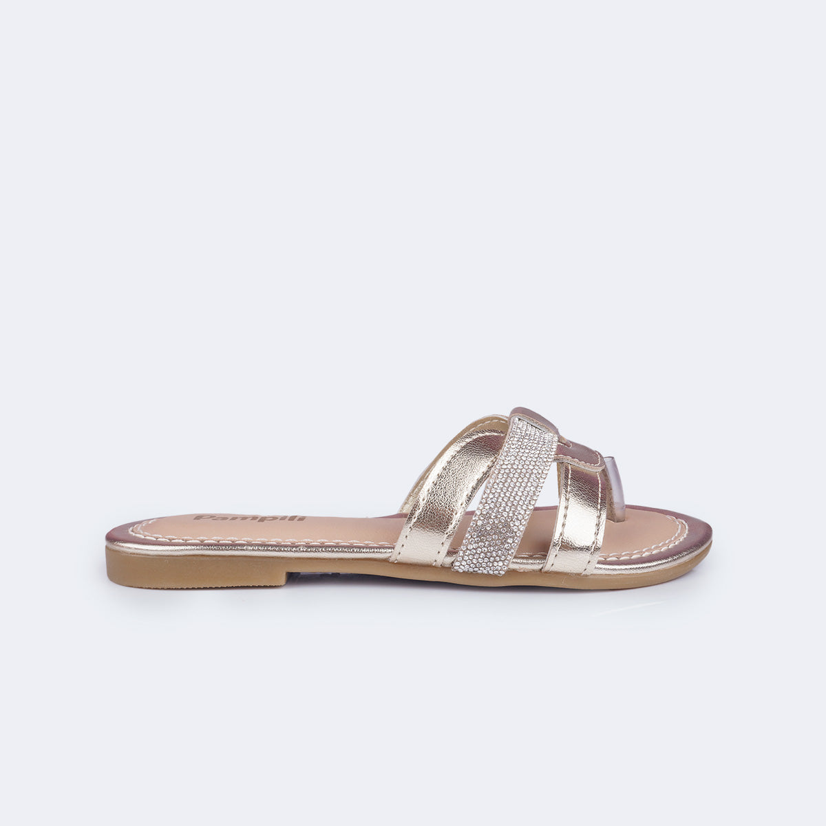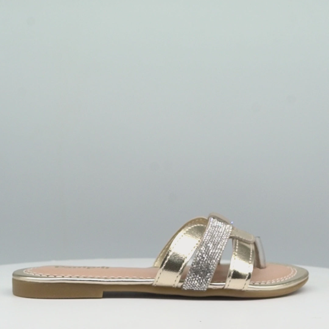 Sandália Rasteira Infantil Pampili Cherrie Tiras com Hotflix Dourada