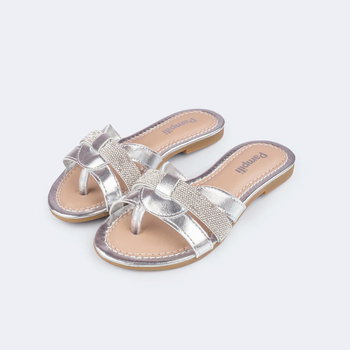 Sandália Rasteira Infantil Pampili Cherrie Tiras com Hotflix Prata