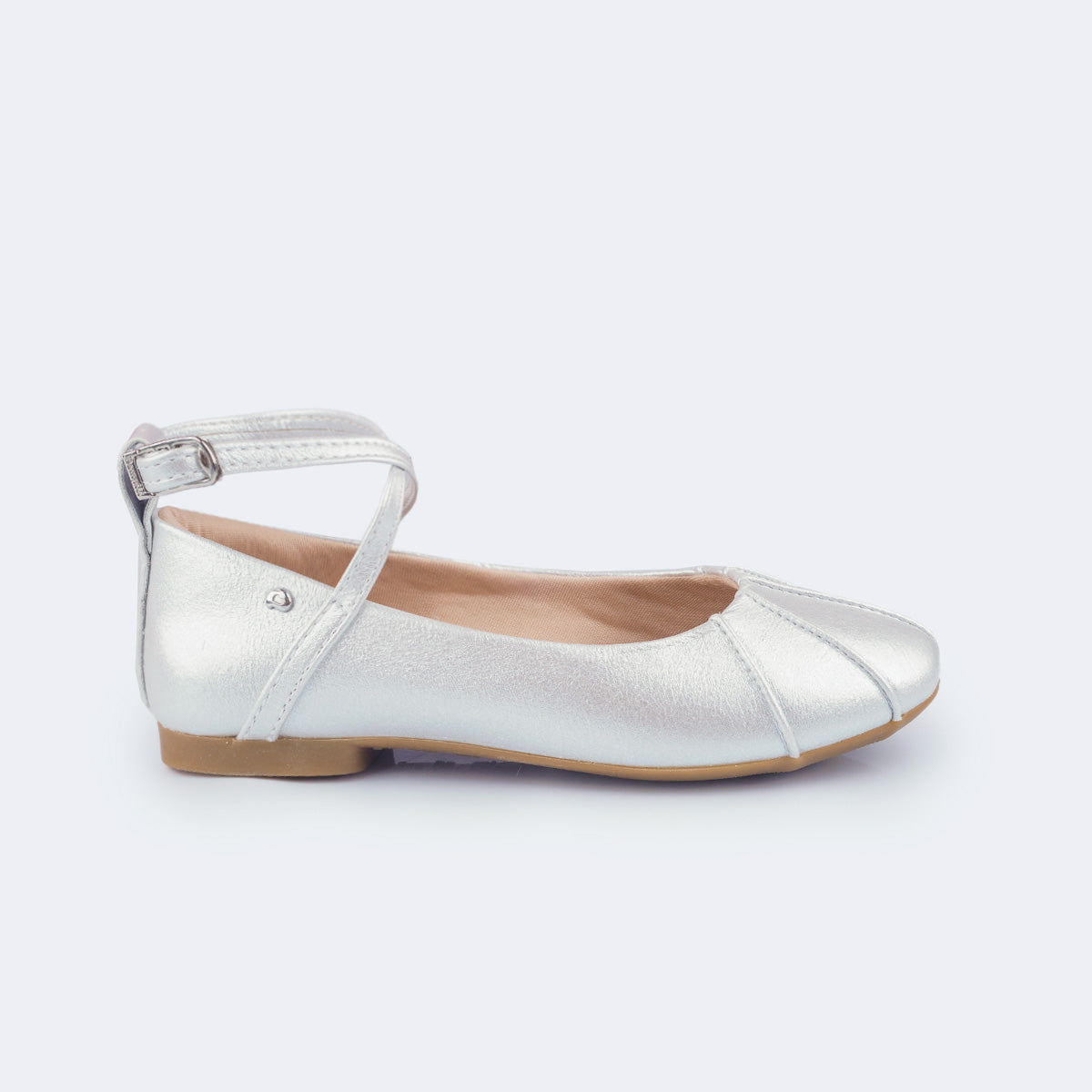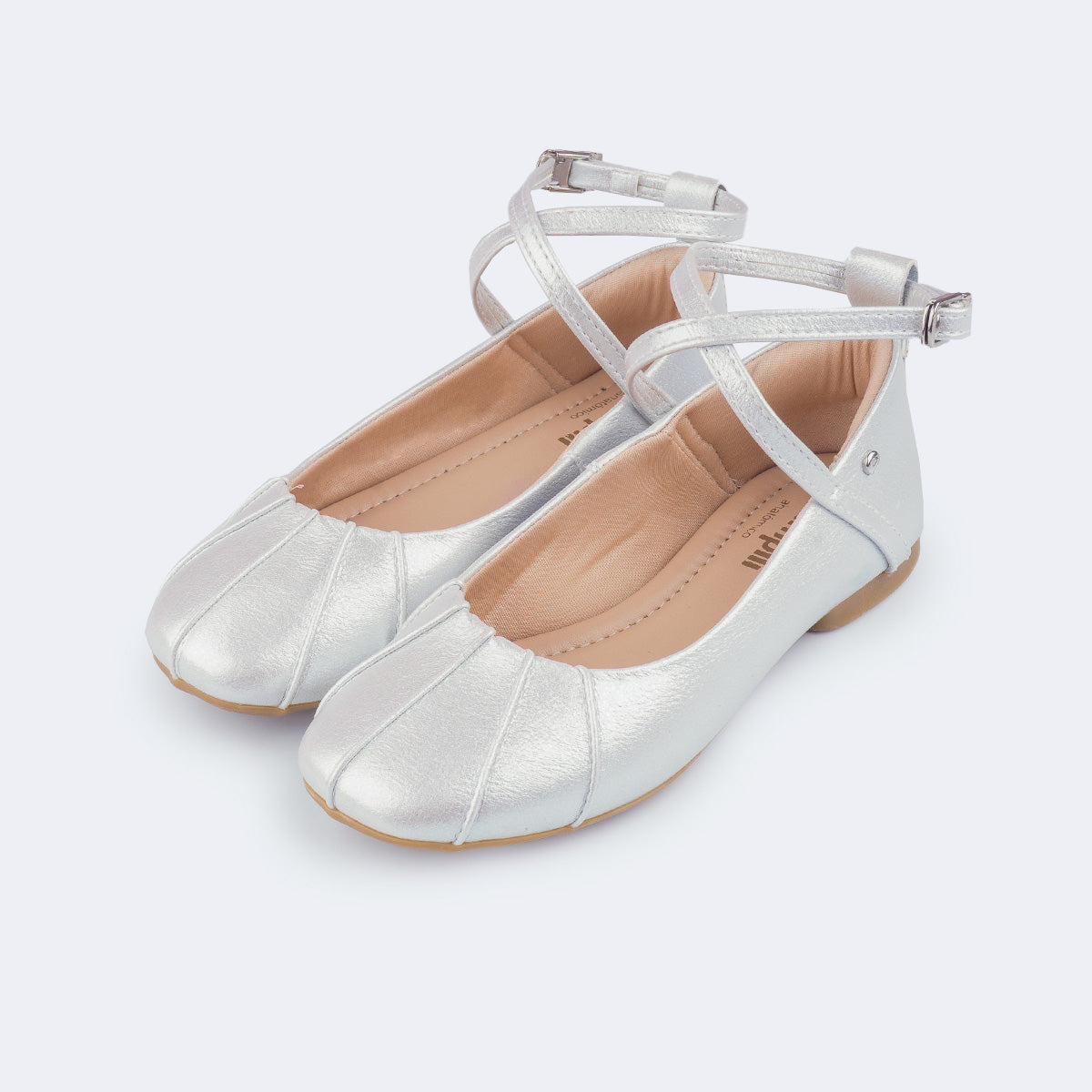 A sapatilha moderna e encantadora que faltava para a sua menina! Inspirada nas clássicas sapatilhas de ballet, esse modelo prateado com brilho sutil combina leveza e elegância em um design atemporal. O bico levemente quadrado e as tiras cruzadas com fivela easy dão um toque delicado, garantindo praticidade e ajuste perfeito no calce.