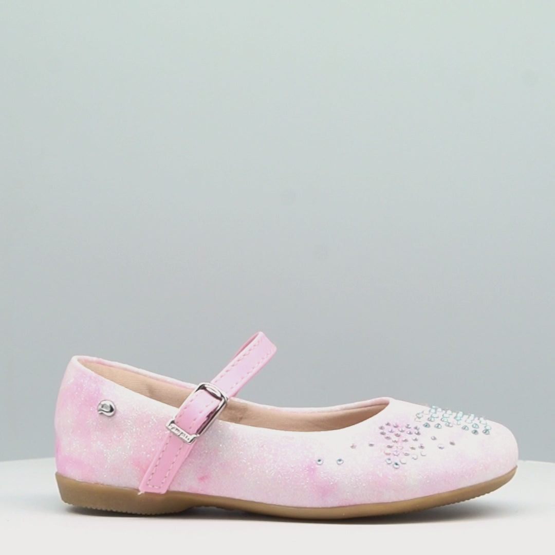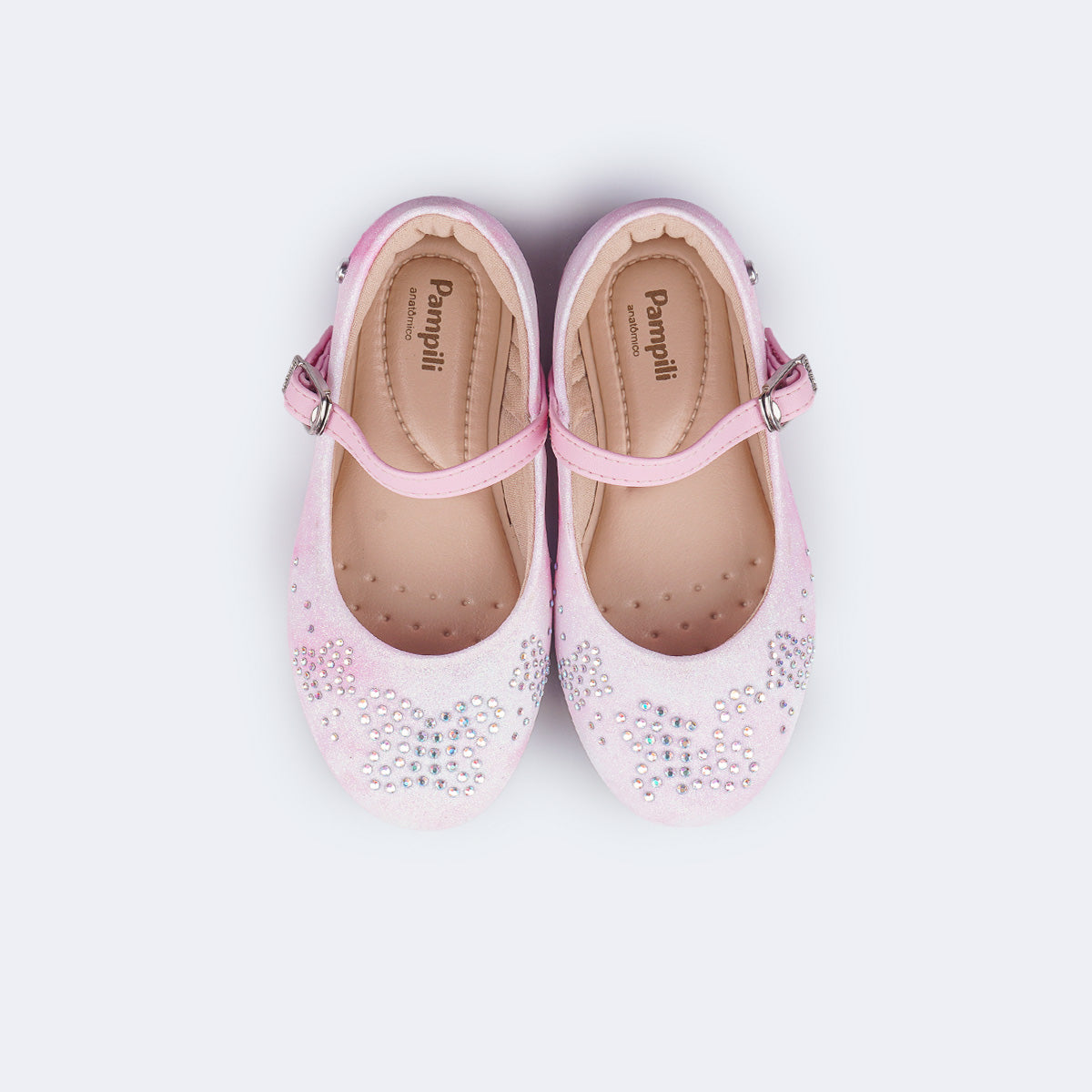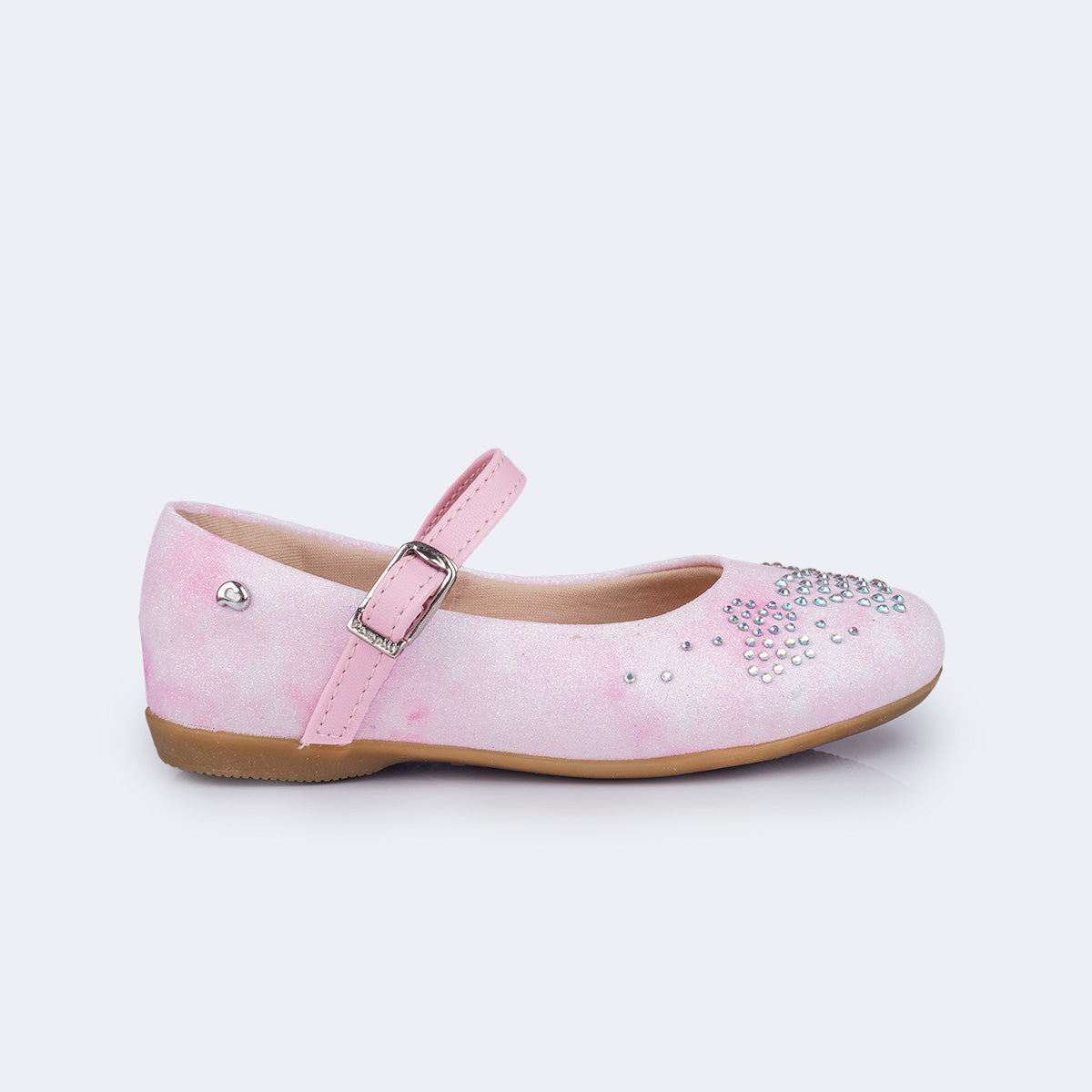 Um toque de brilho e fantasia para os passinhos da menina! O sapato tie-dye rosa combina conforto, estilo e um visual encantador. O material gliterinado com efeito tie-dye suave traz uma mistura delicada de tons rosados, e aplicação borboletas de strass furta-cor na parte frontal que completam o design com um charme especial.
