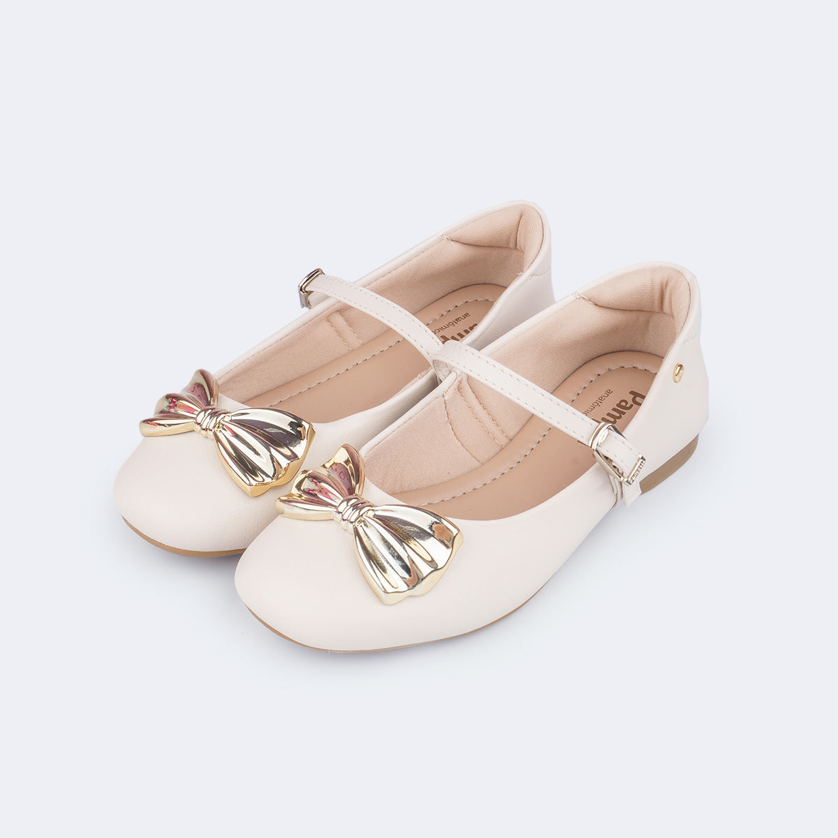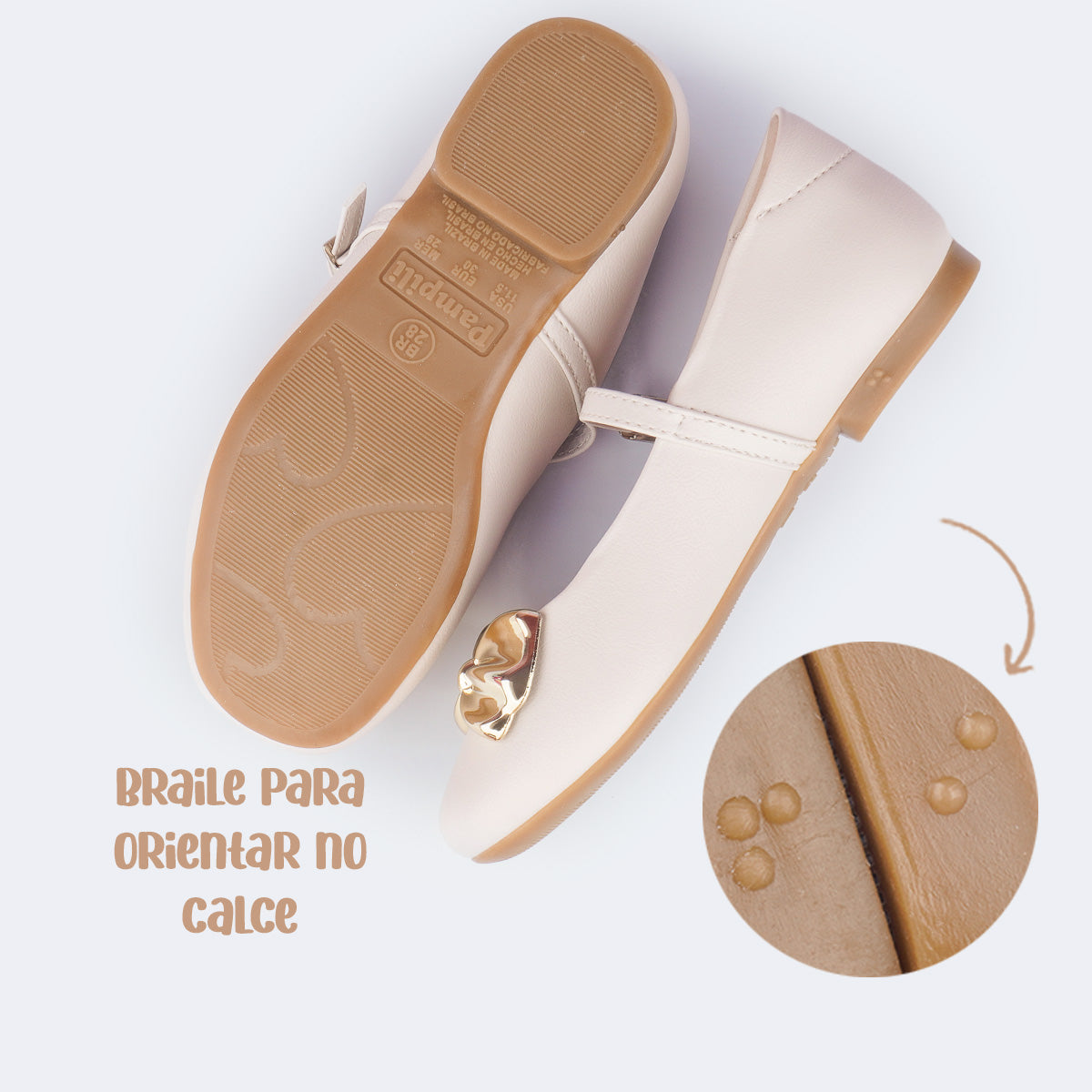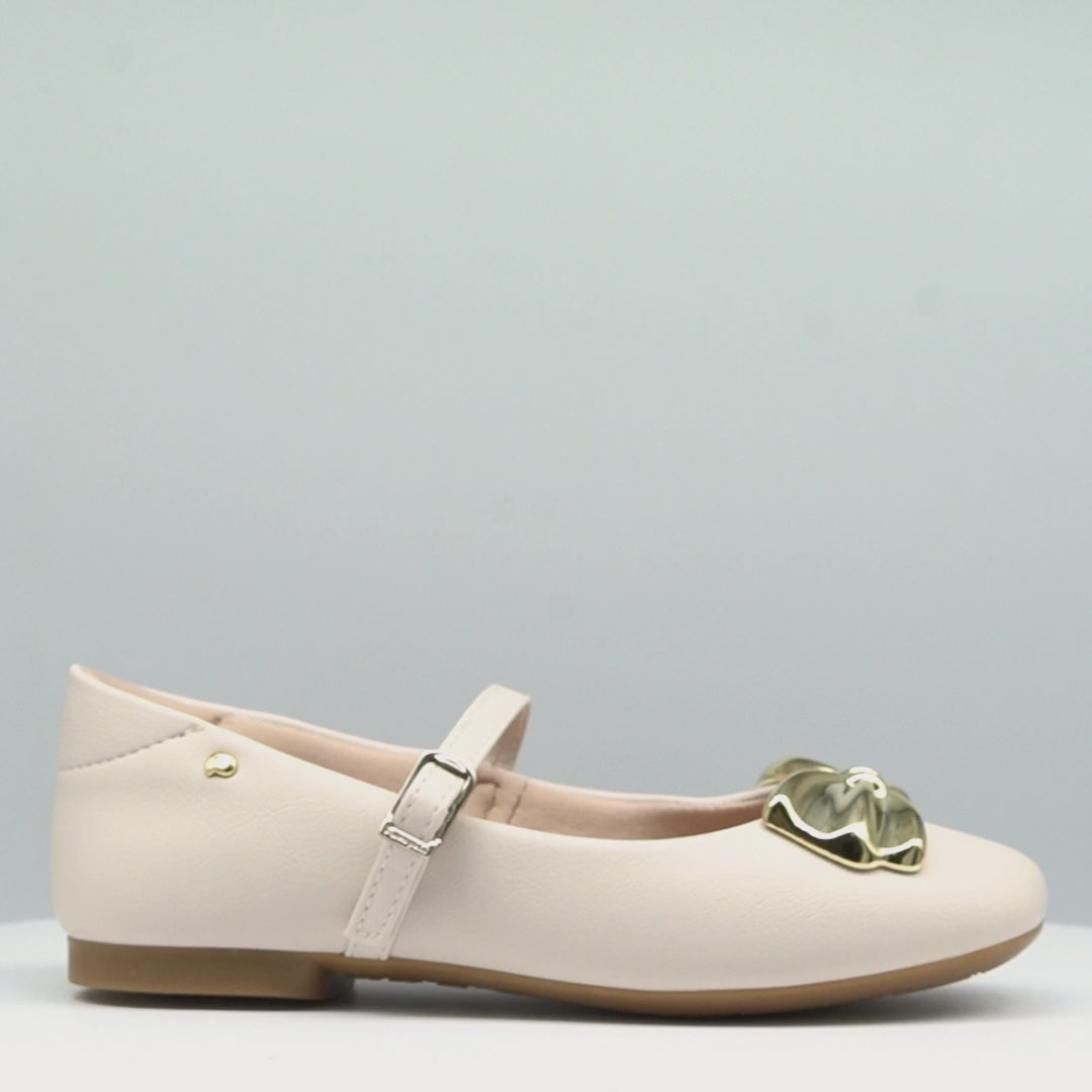 Com um visual delicado e elegante, esta sapatilha estilo ballet é a escolha ideal para meninas que amam unir conforto e charme. Seu design minimalista traz bico levemente quadrado, adiciona um toque contemporâneo, enquanto o laço cromado dourado na parte frontal ilumina o modelo com um brilho sofisticado e moderno.