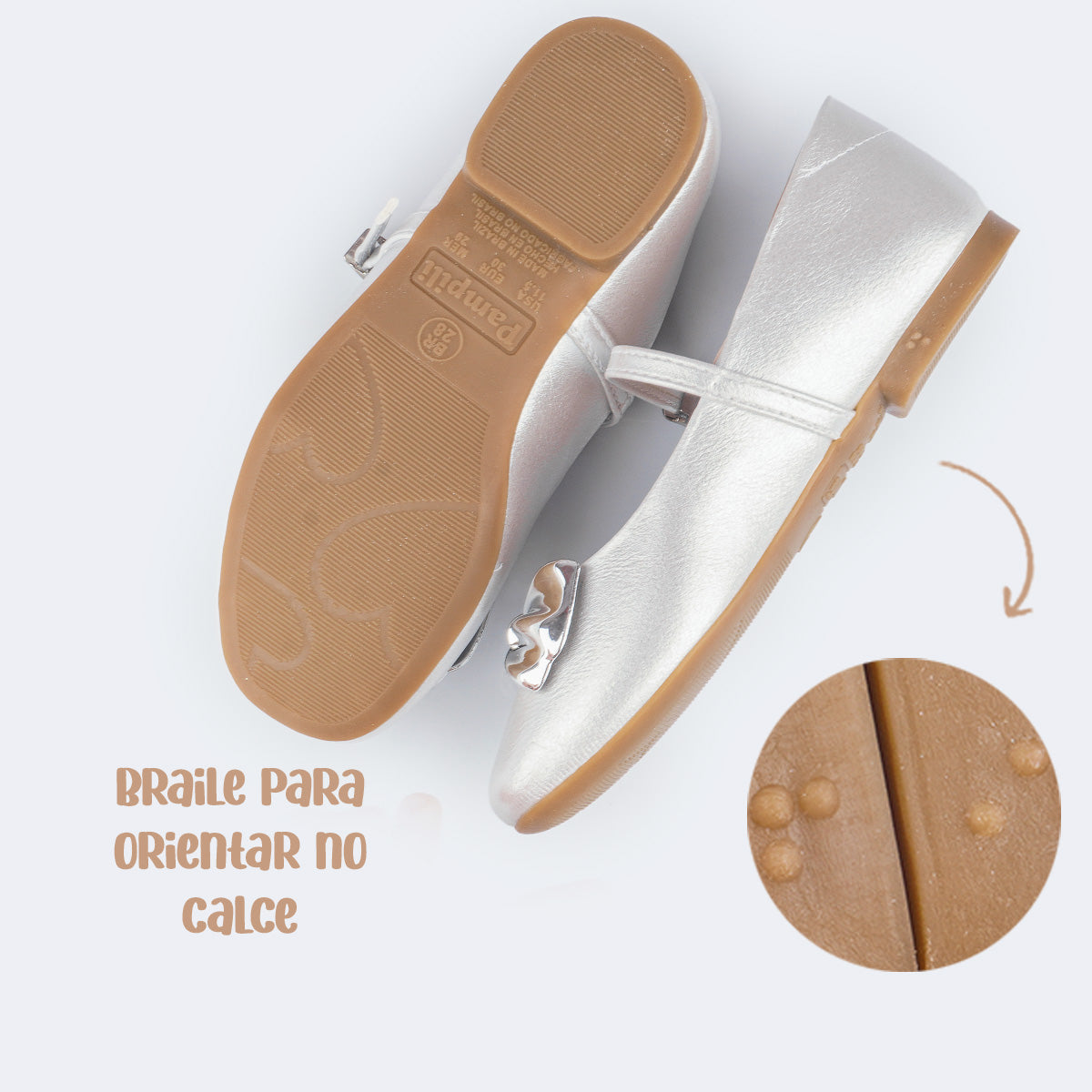 O fechamento por fivela Easy garante um ajuste firme e prático, facilitando o calce. A palmilha anatômica oferece máximo conforto durante o uso, e o forro absorvente mantém os pés sempre sequinhos. O solado em TR Eco antiderrapante proporciona segurança e estabilidade, além de conter transcrição em braile levando maior autonomia para as meninas cegas ou com baixa visão.