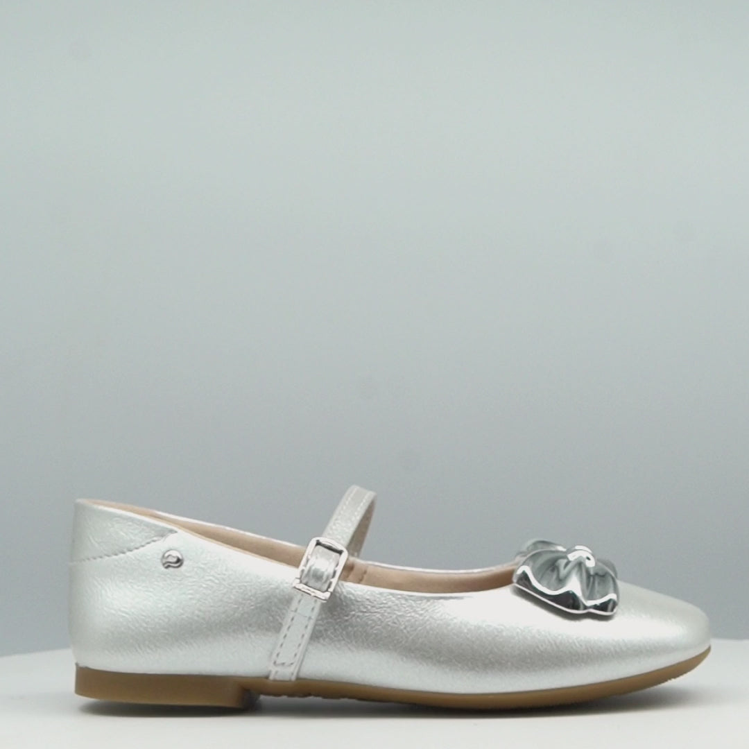 Com um visual delicado e elegante, esta sapatilha estilo ballet é a escolha ideal para meninas que amam unir conforto e charme. Seu design minimalista traz bico levemente quadrado, adiciona um toque contemporâneo, enquanto o laço cromado na parte frontal ilumina o modelo com um brilho sofisticado e moderno.