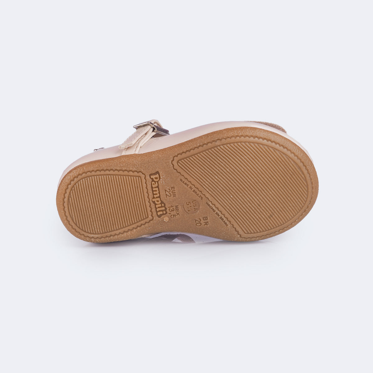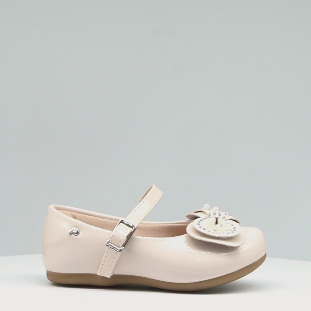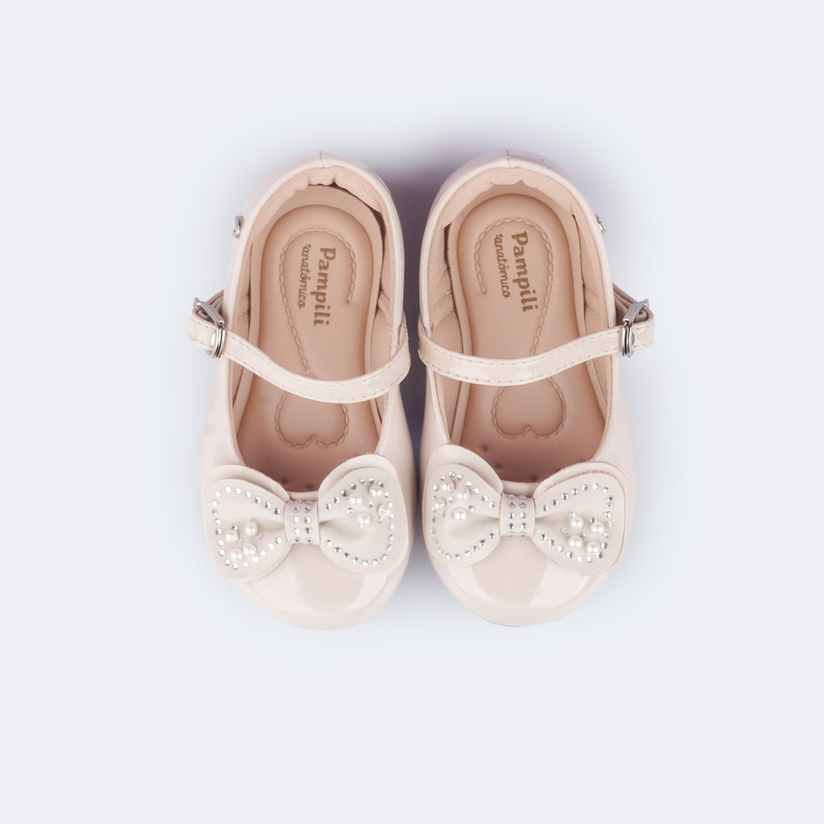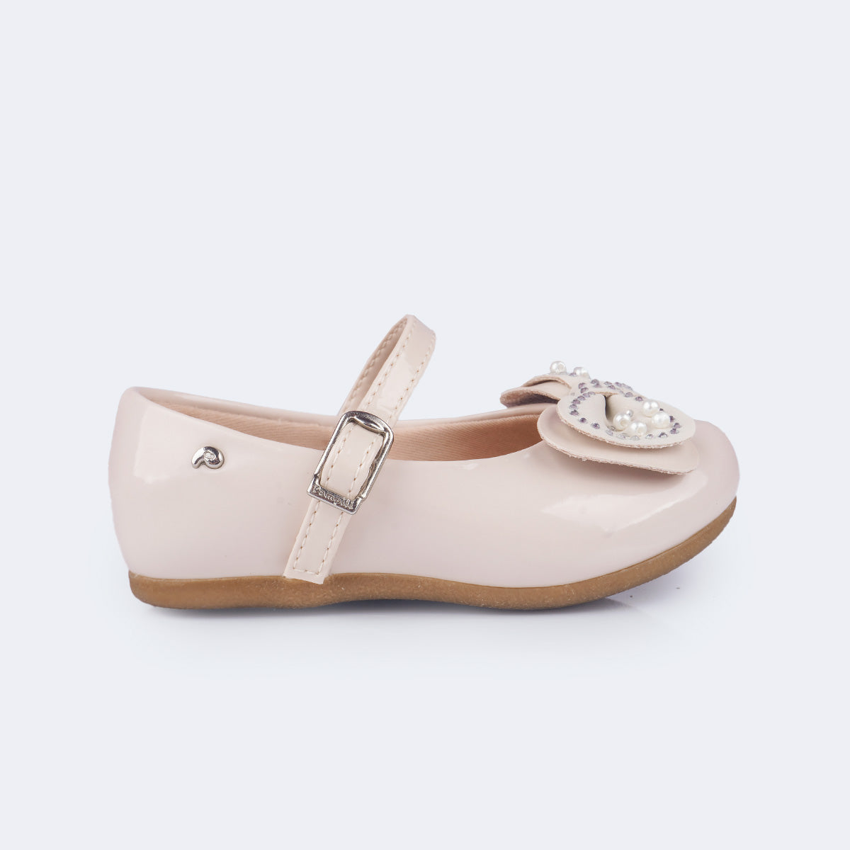 Sapato Infantil Feminino Mini Angel Duplo Laço Nude Verniz