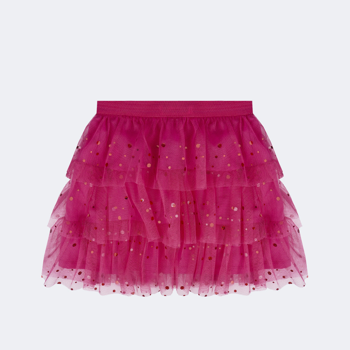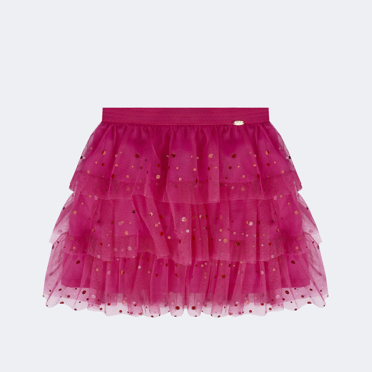 Delicada e alegre, esta saia pink de tule é perfeita para meninas que gostam de brilhar. O efeito de camadas com babadinhos esvoaçantes e poás metalizados cria um visual divertido e arrumadinho, ideal para ocasiões especiais. O cós com ajuste confortável garante liberdade de movimentos, enquanto o forro em algodão proporciona maciez e bem-estar. Uma peça versátil para transformar produções especiais e momentos inesquecíveis.
