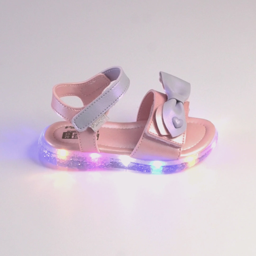 Para iluminar o dia a dia, essa sandália de LED estilo papete rosa claro com brilho perolado suave e detalhes em lilás, deixa cada passinho ainda mais divertido. As luzes de LED coloridas trazem aquele efeito especial que a menina ama, sem abrir mão de um visual delicado.