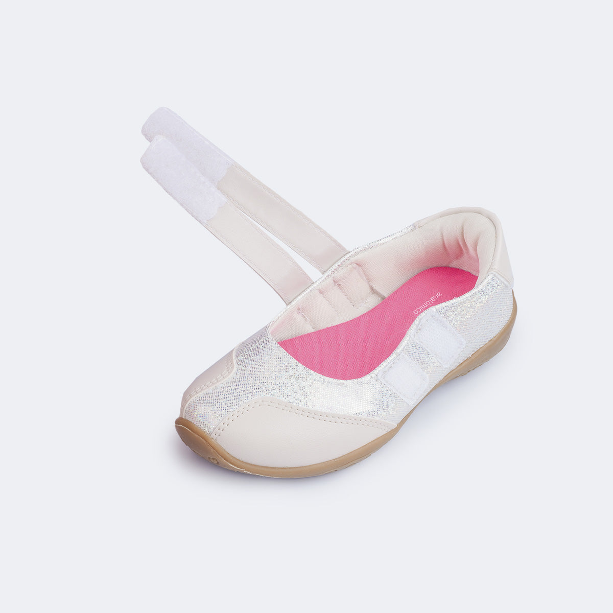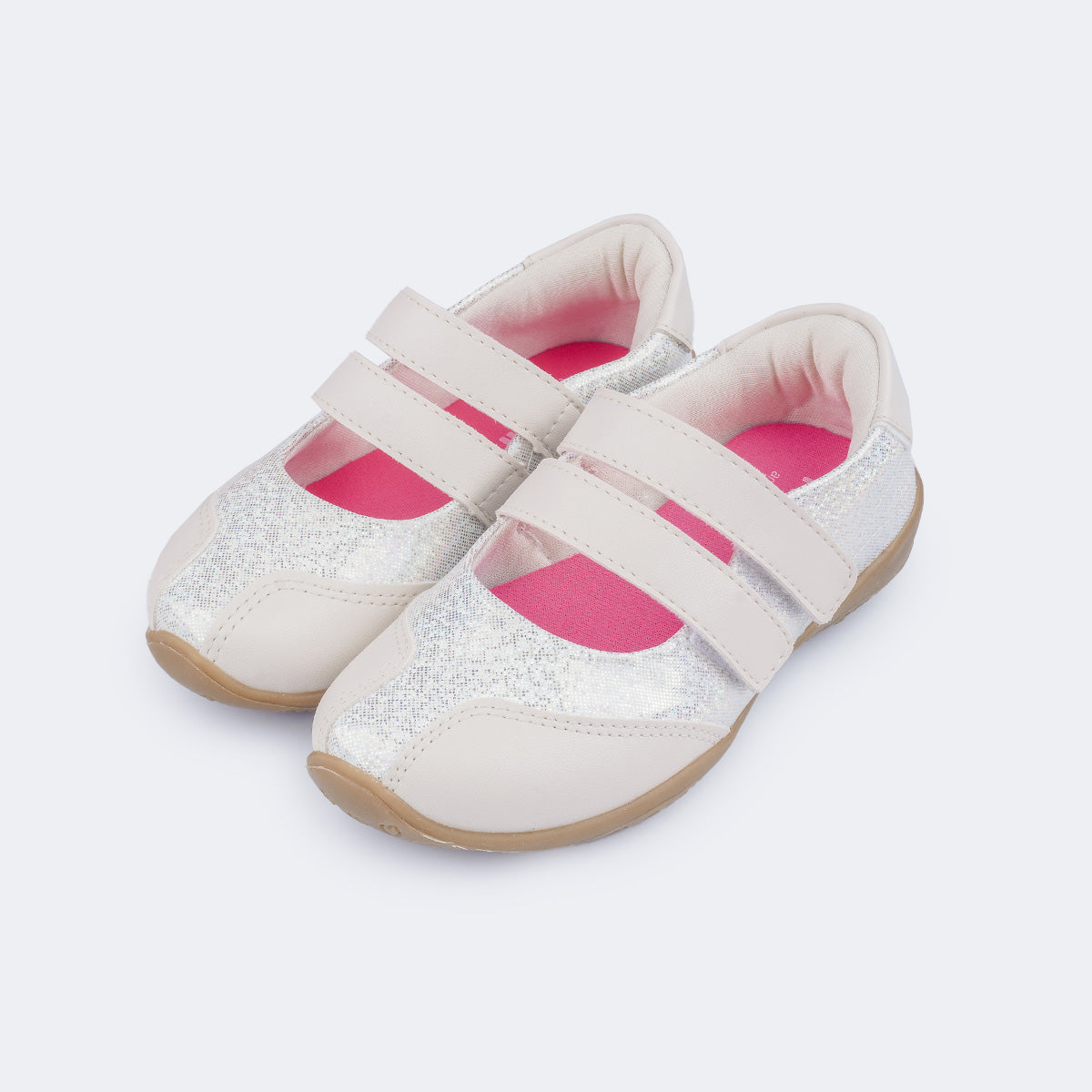 Desenvolvido com tecnologia de conforto e materiais de fácil limpeza, o modelo possui forro absorvente, palmilha macia e solado antiderrapante com formato anatômico que garante segurança e firmeza a cada passo. O fechamento por fita aderente torna o calce fácil, promovendo praticidade e autonomia para as pequenas.