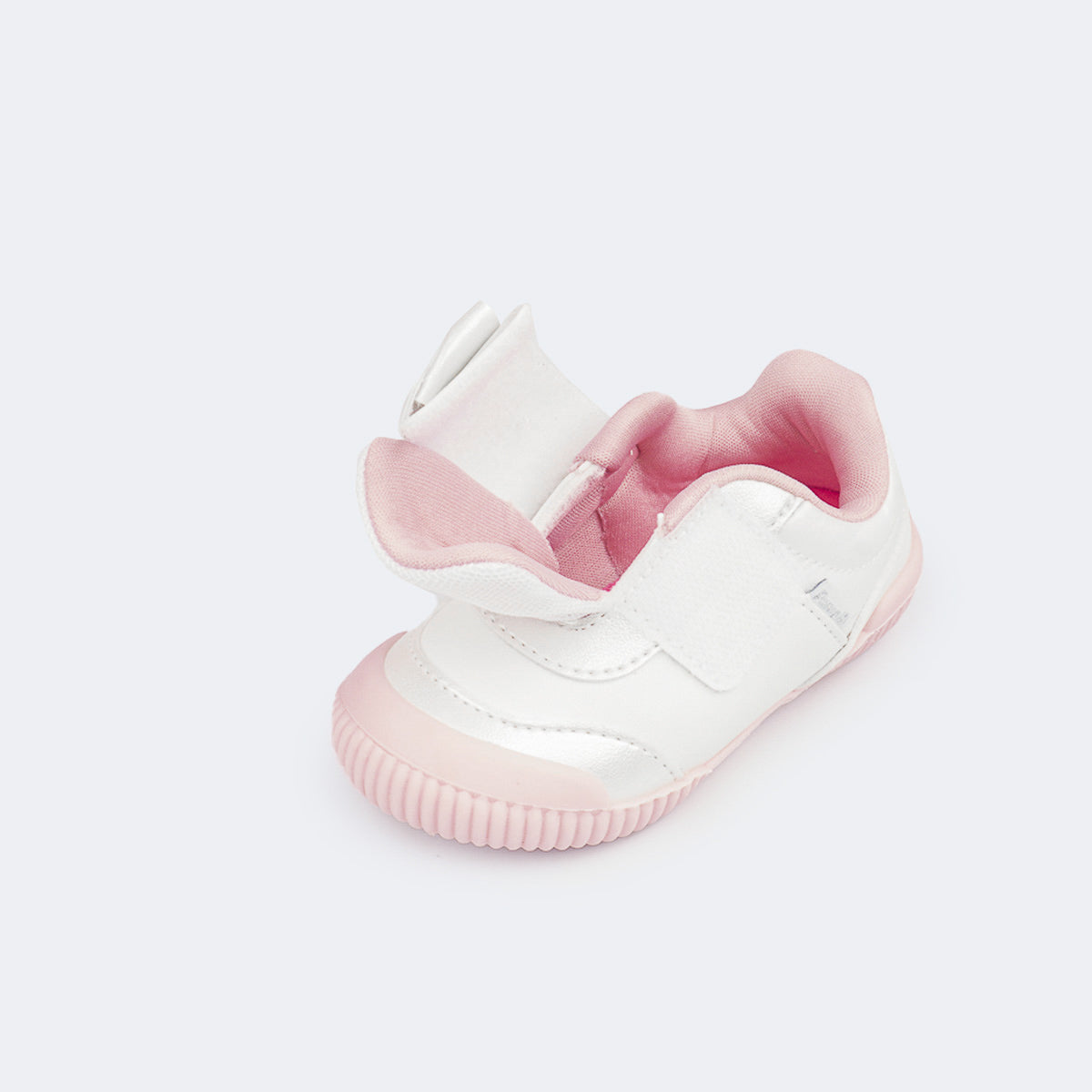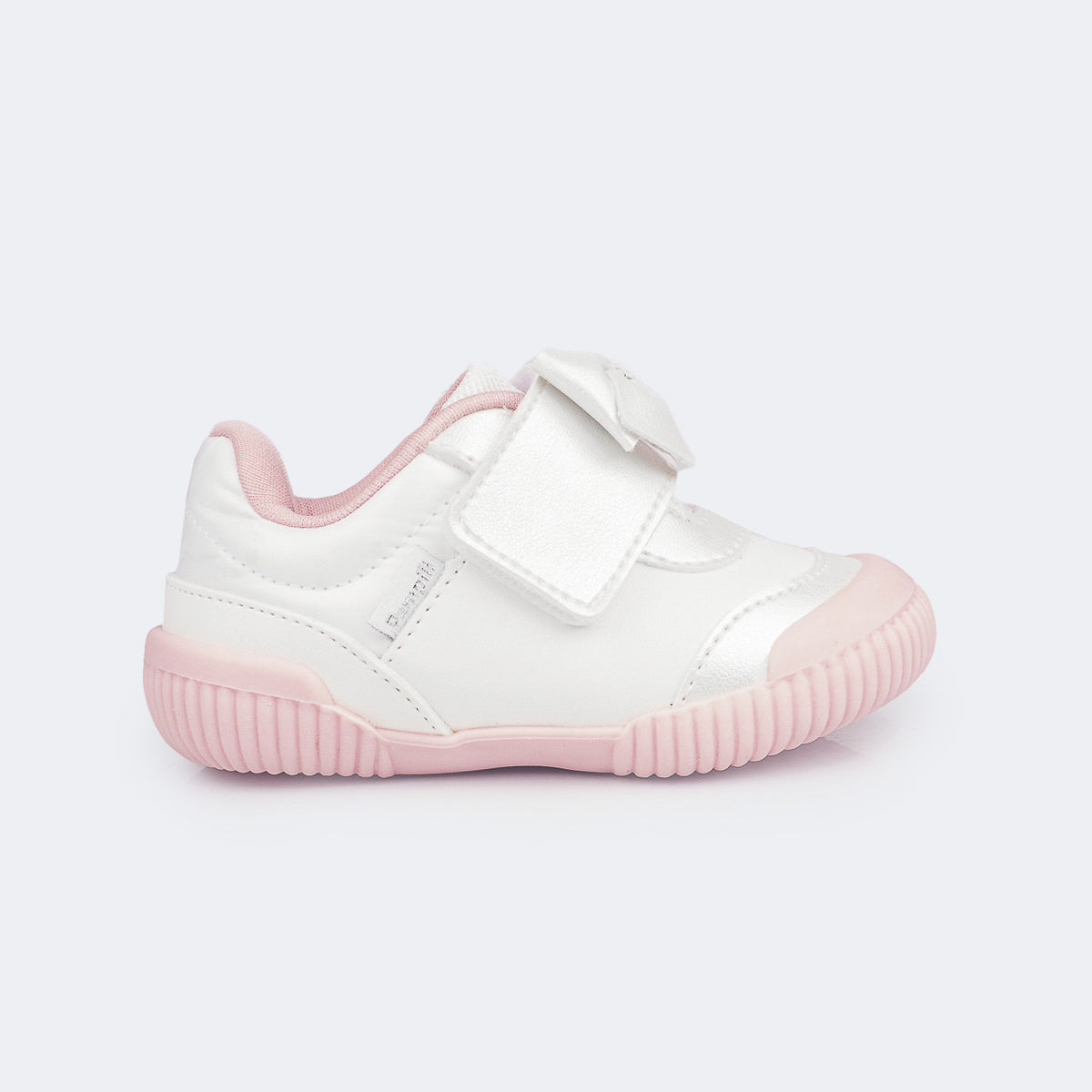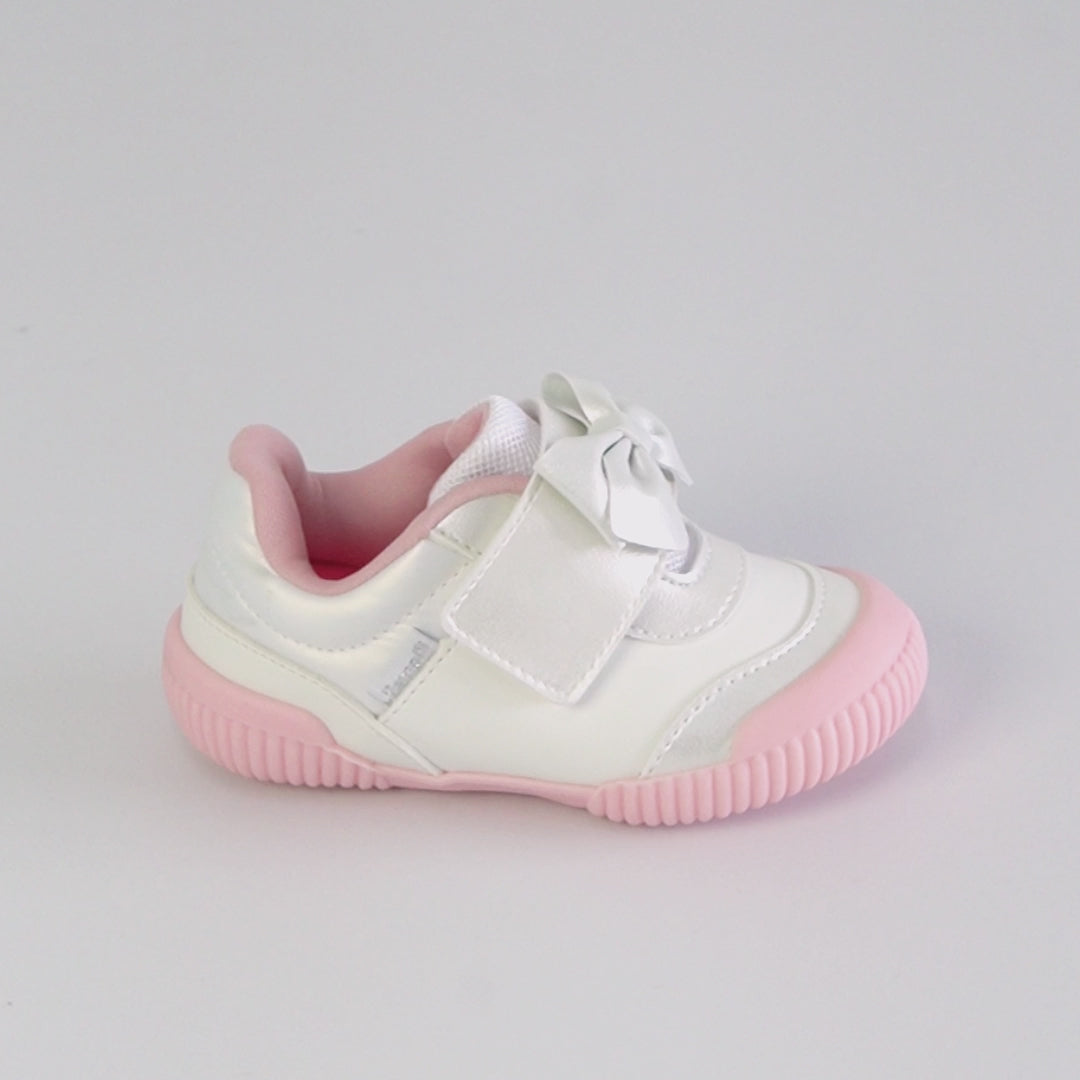 Para meninas que estão começando a explorar o mundo com passinhos cheios de energia, esse tênis para bebê branco cintilante com detalhe em laço e tecido comfy é a escolha perfeita!