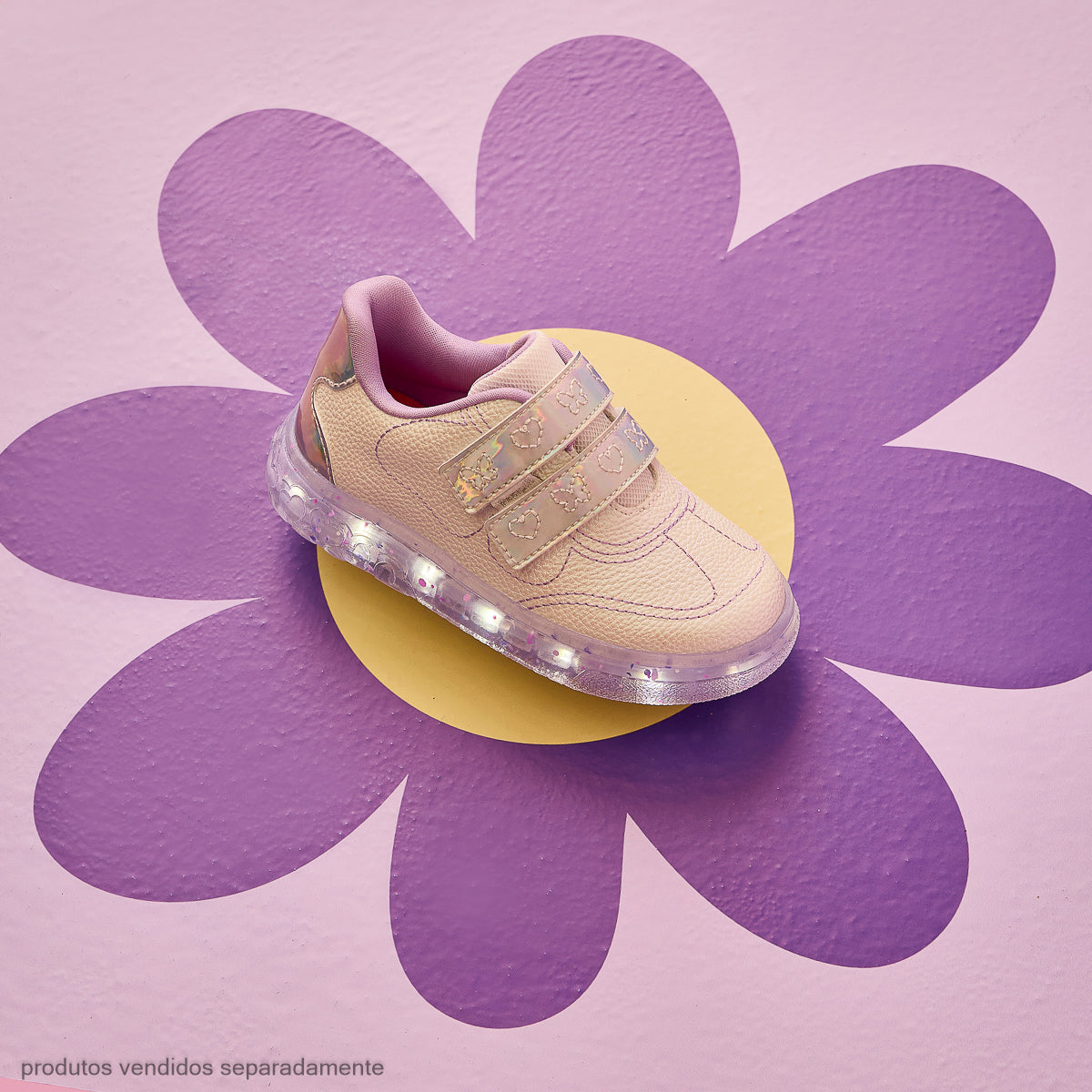 Com duplo fecho de contato, o calce é fácil e doa maior autonomia para as meninas. O forro acolchoado e respirável mantém os pés sequinhos e confortáveis, enquanto a palmilha anatômica garante leveza e amortecimento. O solado com identificação em braile promove inclusão e auxilia na diferenciação do pé direito e esquerdo para meninas cegas ou com baixa visão.