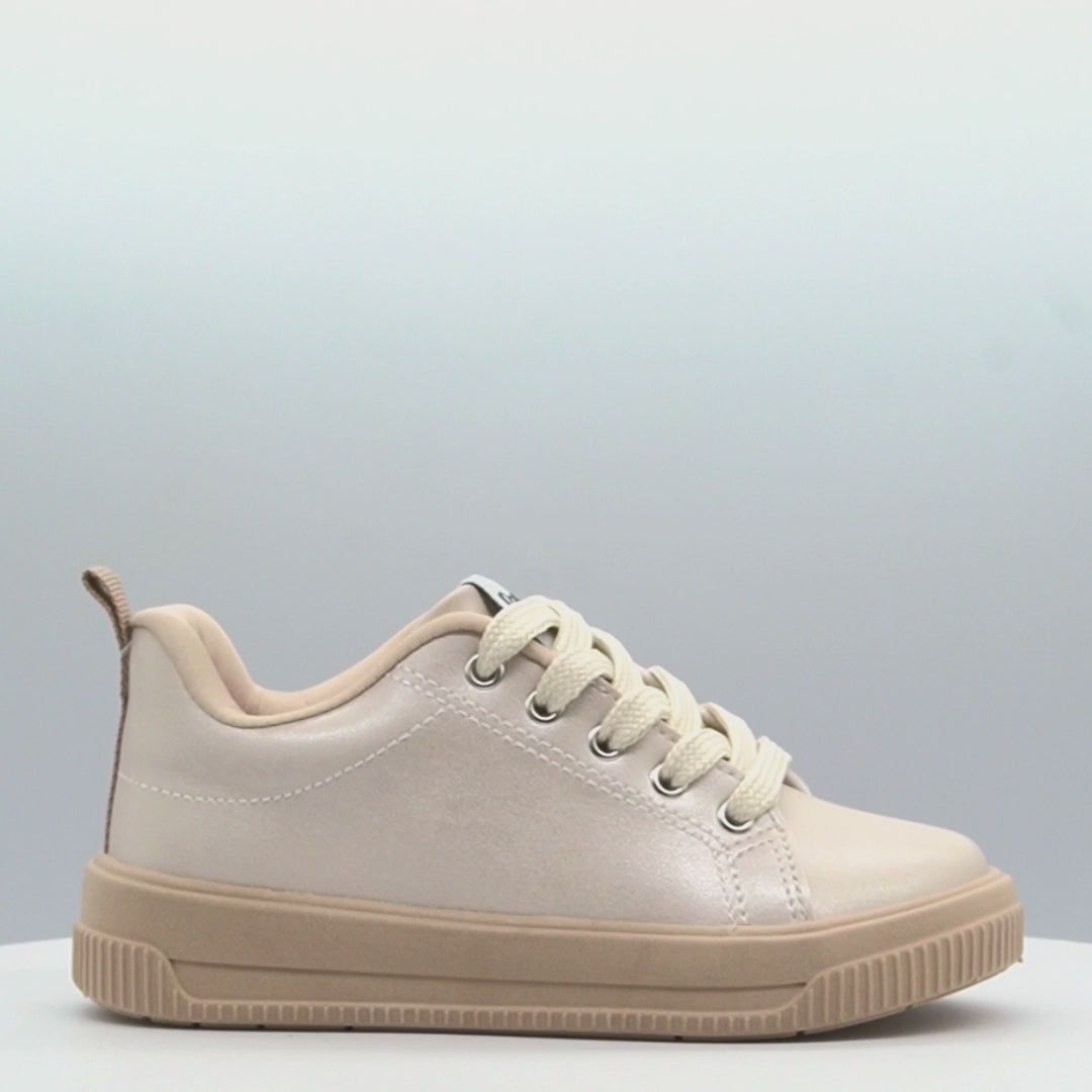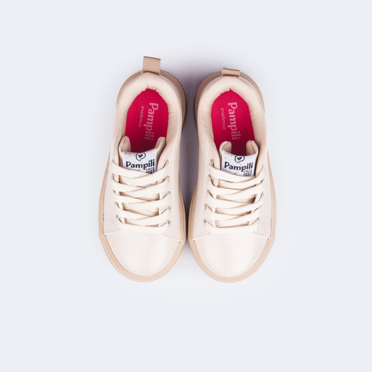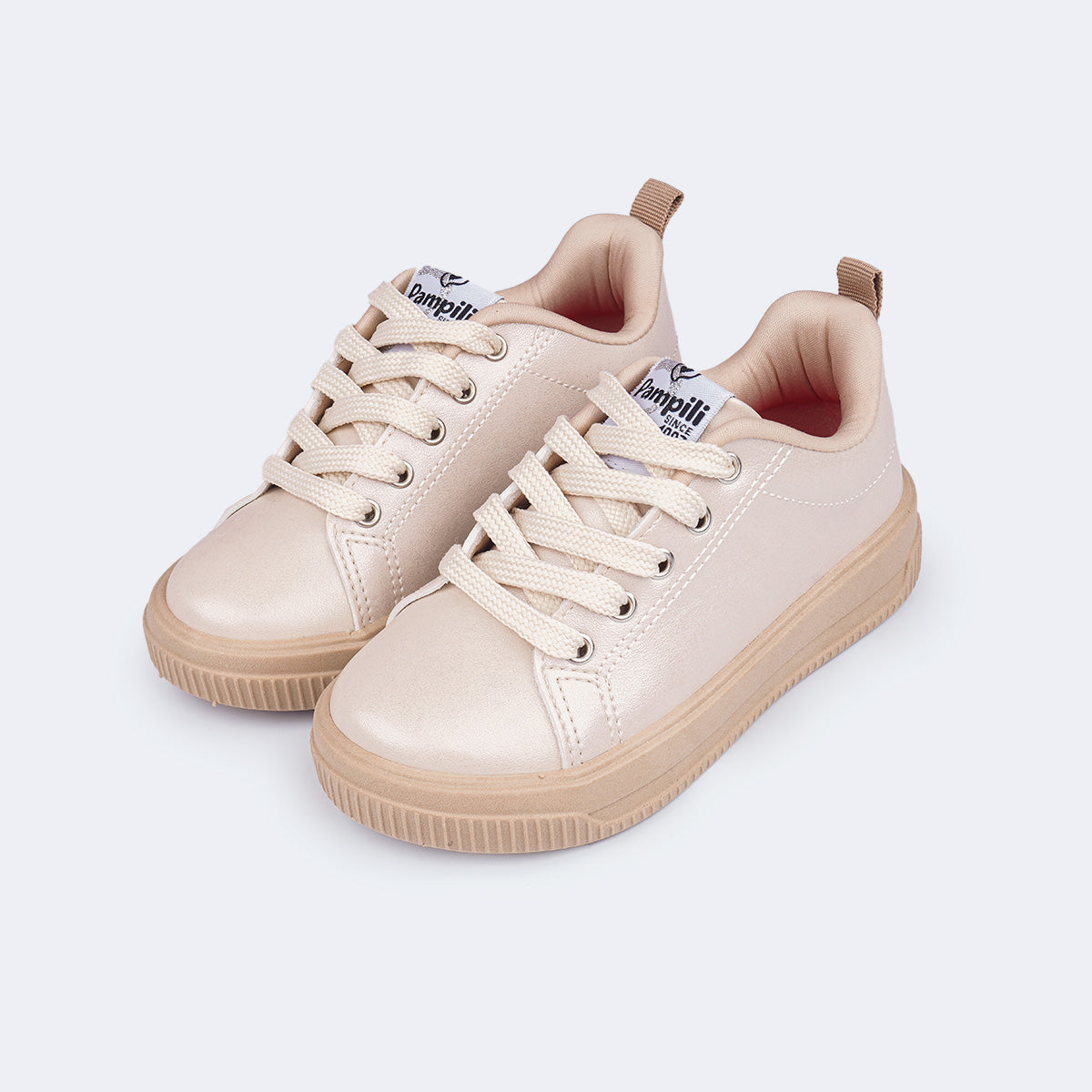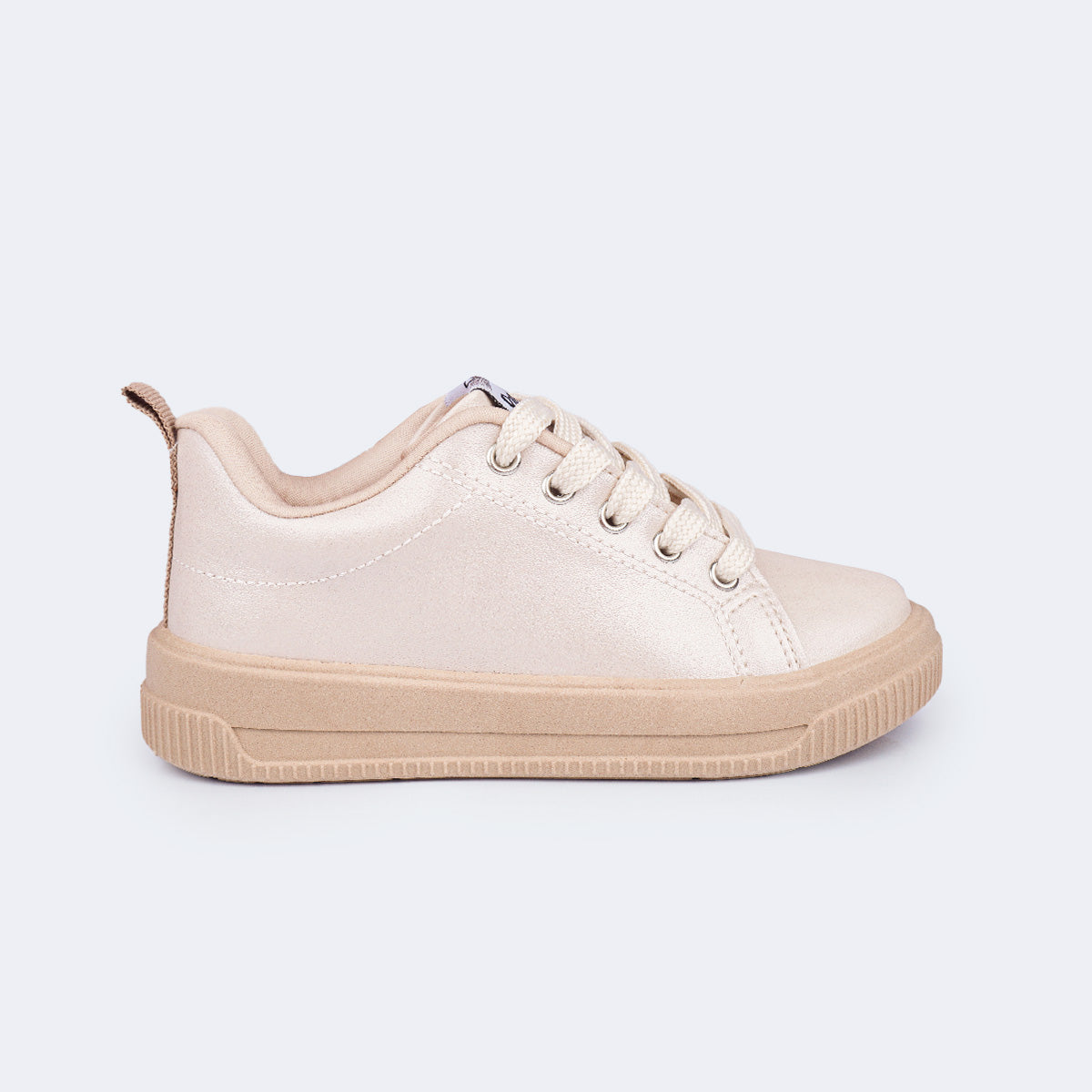 Com visual delicado e toque perolado, este tênis bege infantil acompanha a rotina das meninas com conforto e praticidade. O cabedal em material de fácil limpeza garante manutenção simples no dia a dia, enquanto o fechamento em cadarço oferece ajuste seguro e personalizado para todas as atividades.