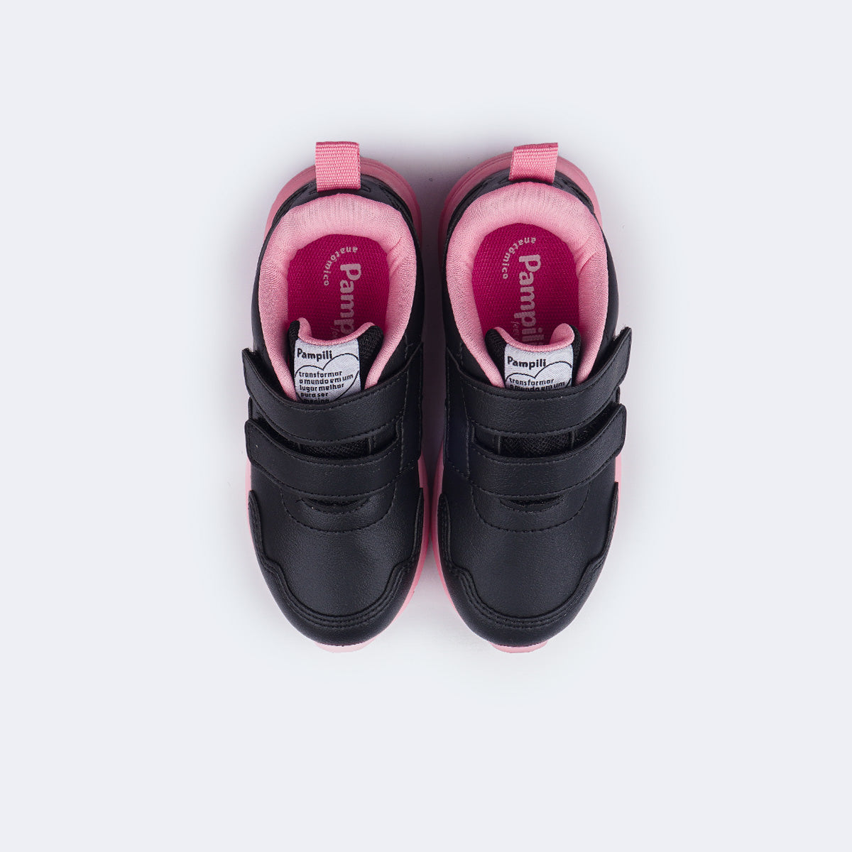 Pensado especialmente para acompanhar o dia a dia na escola, este tênis preto e rosa infantil entrega durabilidade, cuidado e autonomia para a menina. O cabedal em material resistente, respirável e de fácil limpeza facilita a rotina das famílias, enquanto o fechamento em fita aderente garante calce fácil, permitindo que as meninas tenham mais independência na hora de se arrumar.