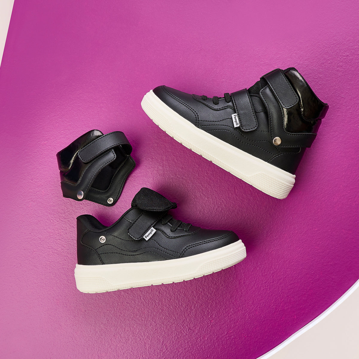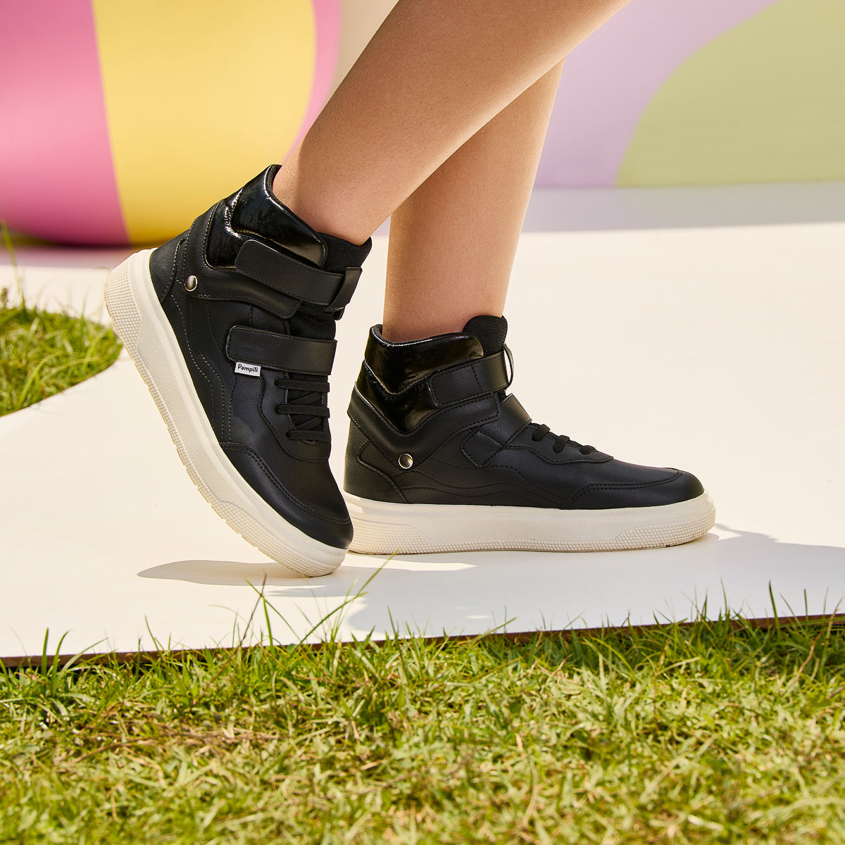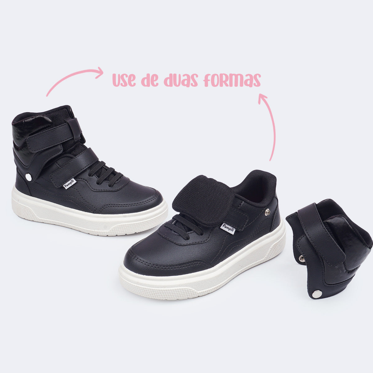 Pensado para acompanhar a rotina das meninas com praticidade e estilo, este tênis 2 em 1 oferece duas formas de uso: cano alto ou cano baixo. A peça removível é fixada por rebites resistentes, permitindo transformar o visual em segundos e garantindo versatilidade para todos os momentos.