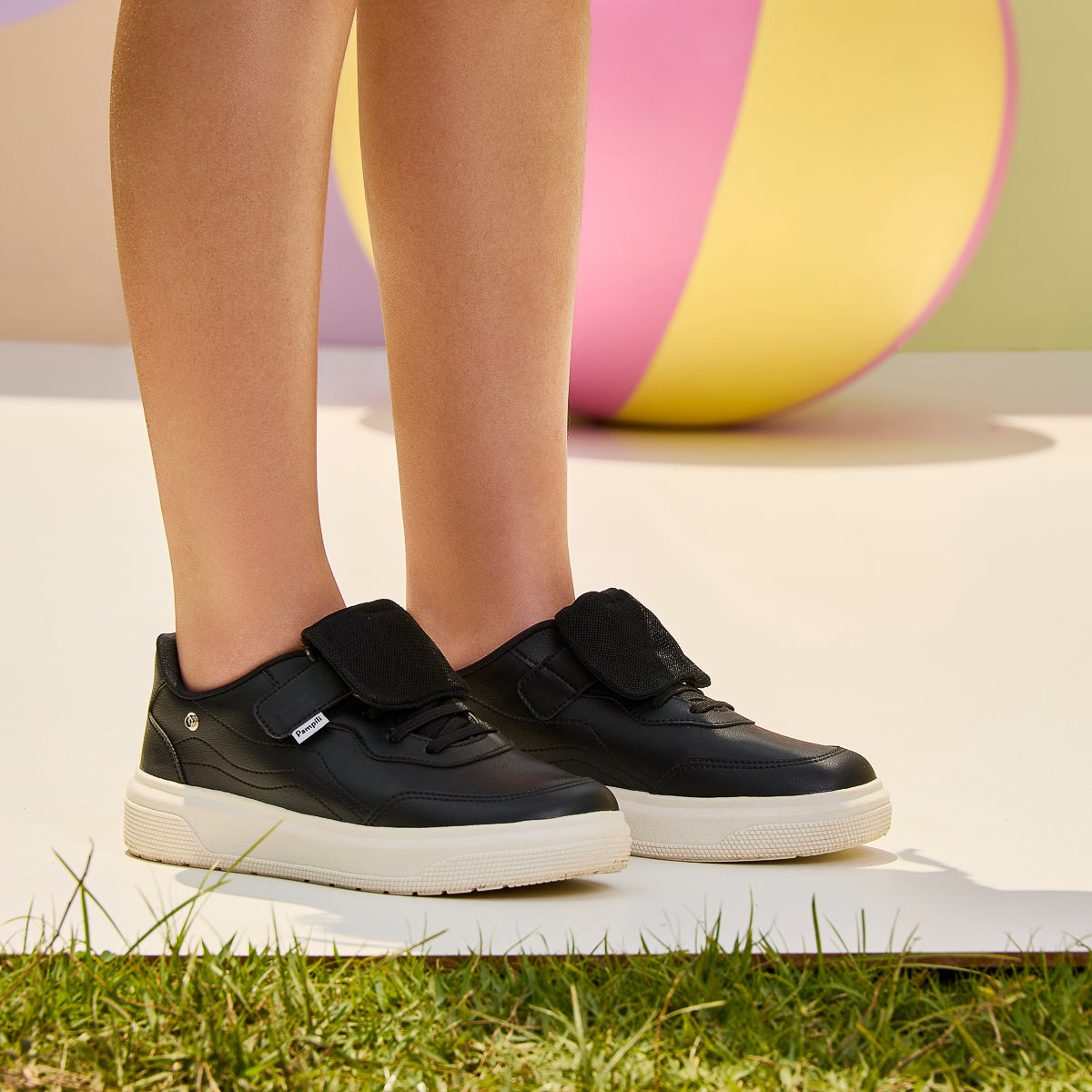 Confeccionado em material de fácil limpeza, esse tênis for pensado para a rotina, com fecho em fita aderente, facilitando o calce e oferecendo autonomia para a menina. Conta com forro absorvente acolchoado, palmilha anatômica Feet Care e o solado caixa resistente e antiderrapante, assegurando conforto prolongado e segurança no dia a dia.