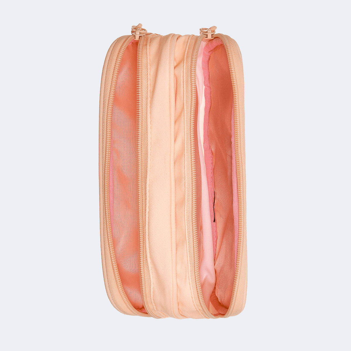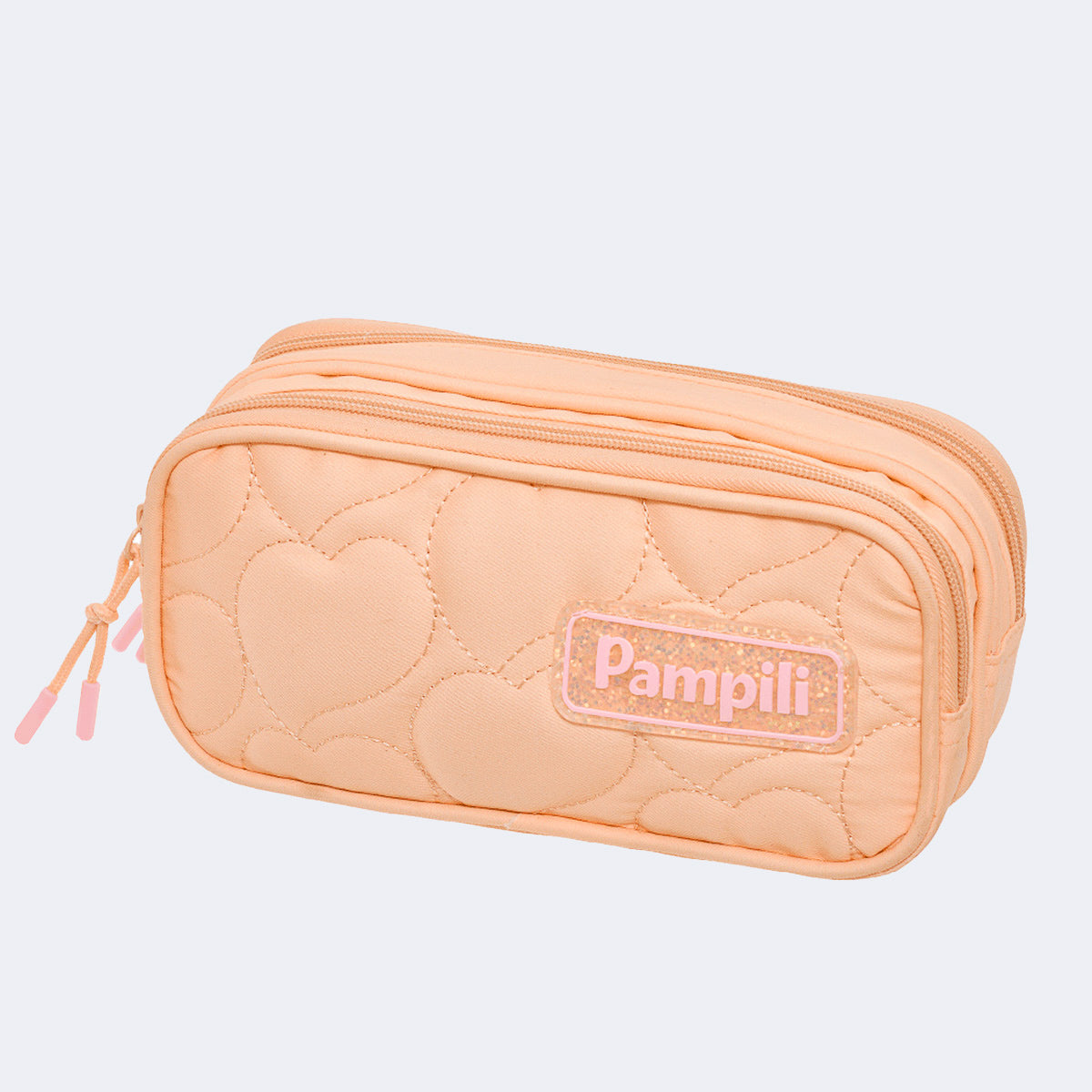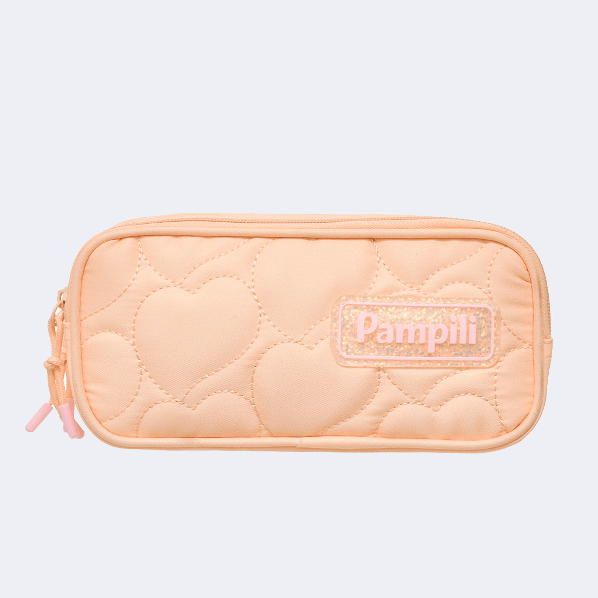 Estojo infantil salmão com costuras em formato de corações, desenvolvido para acompanhar a rotina escolar das meninas com praticidade, qualidade e um visual apaixonante. Desenvolvido em poliéster de alta resistência (300D), garante durabilidade superior e resistência ao uso contínuo. Com duas repartições amplas, o modelo facilita a organização dos materiais mantendo tudo sempre acessível. Os zíperes com puxadores reforçados oferecem maior vida útil ao produto. Ideal para meninas que precisam de um estojo funcional, leve e resistente dia a dia escolar.