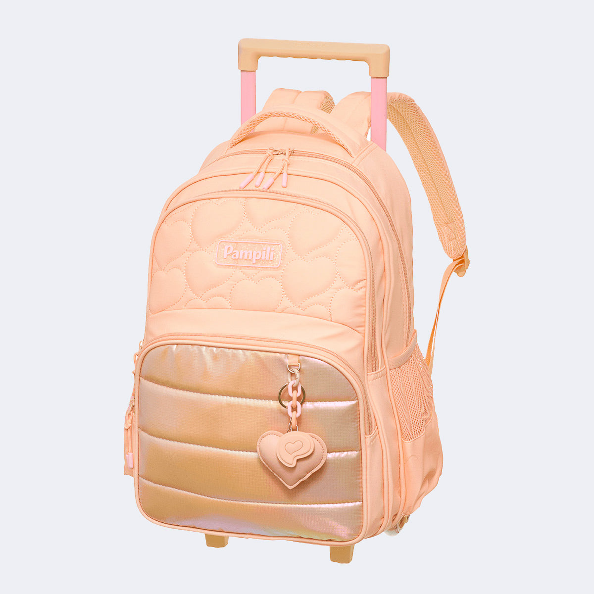 Mochila de Rodinha Infantil Escolar Pampili Coração Salmão