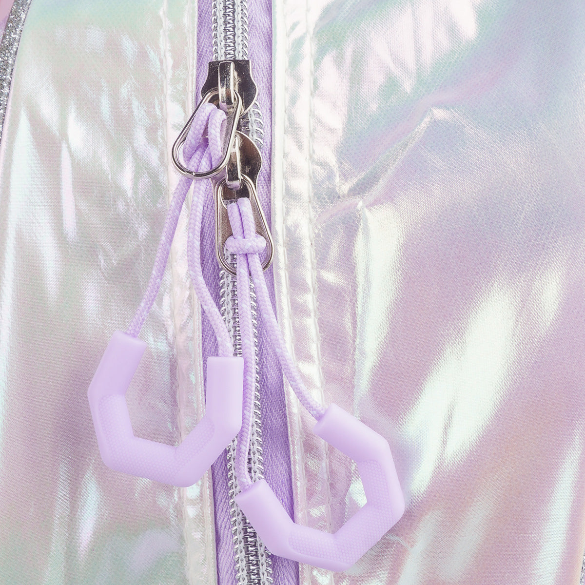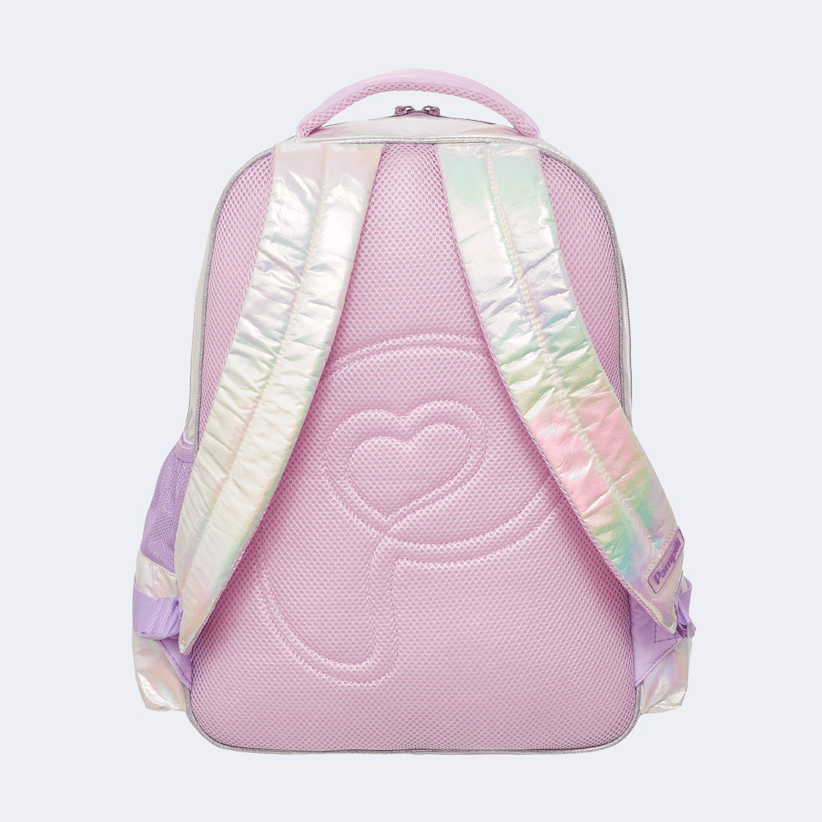 Mochila escolar lilás com tecido comfy holográfico e estampa de borboletas. Projetada para desempenho e durabilidade no dia a dia escolar, esta mochila oferece capacidade total de 18 litros, com estrutura resistente suportando até 5 kg de materiais. Fabricada em poliéster de alta densidade (300D), o modelo garante excelente performance em uso contínuo.
