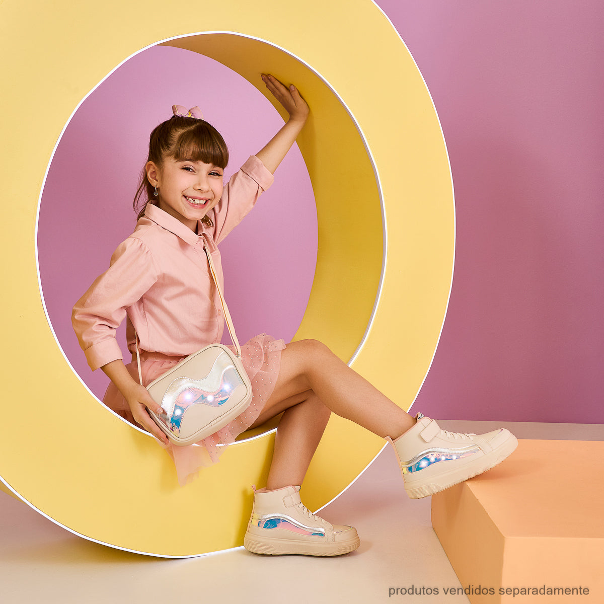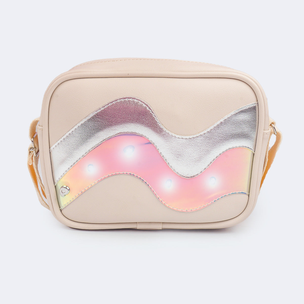 Moderna, divertida e cheia de atitude, a bolsa infantil nude com LED é perfeita para meninas que amam acessórios estilosos e cheios de personalidade. O modelo traz detalhe frontal holográfico que cria um efeito super moderno e pontos de LED que iluminam o acessório. Possui fechamento em zíper, interior com forro macio e alça regulável que garante conforto no uso. Os acabamentos em metal antioxidante reforçam a durabilidade e o charme do acessório, tornando essa bolsa a escolha ideal para acompanhar as pequenas em passeios, festas e momentos especiais com muito estilo.