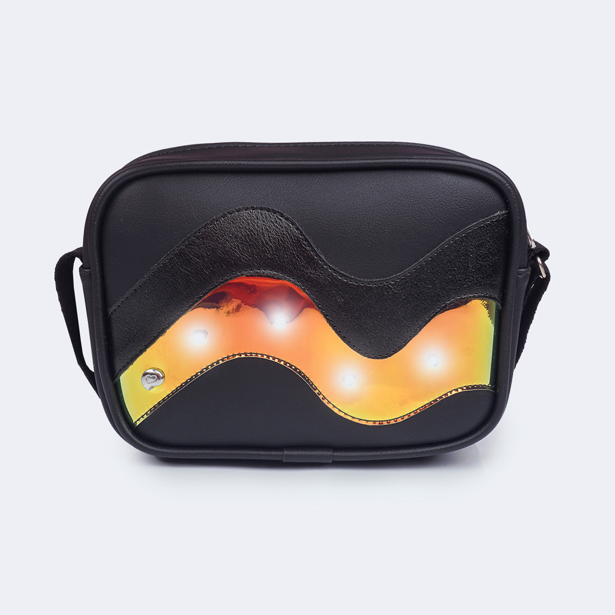 Moderna, divertida e cheia de atitude, a bolsa infantil preta com LED é perfeita para meninas que amam acessórios estilosos e cheios de personalidade. O modelo traz detalhe frontal holográfico que cria um efeito super moderno e pontos de LED que iluminam o acessório. Possui fechamento em zíper, interior com forro macio e alça regulável que garante conforto no uso. Os acabamentos em metal antioxidante reforçam a durabilidade e o charme do acessório, tornando essa bolsa a escolha ideal para acompanhar as pequenas em passeios, festas e momentos especiais com muito estilo.