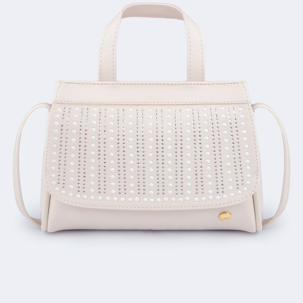 Bolsa Infantil Pampili com Pérolas e Strass Nude