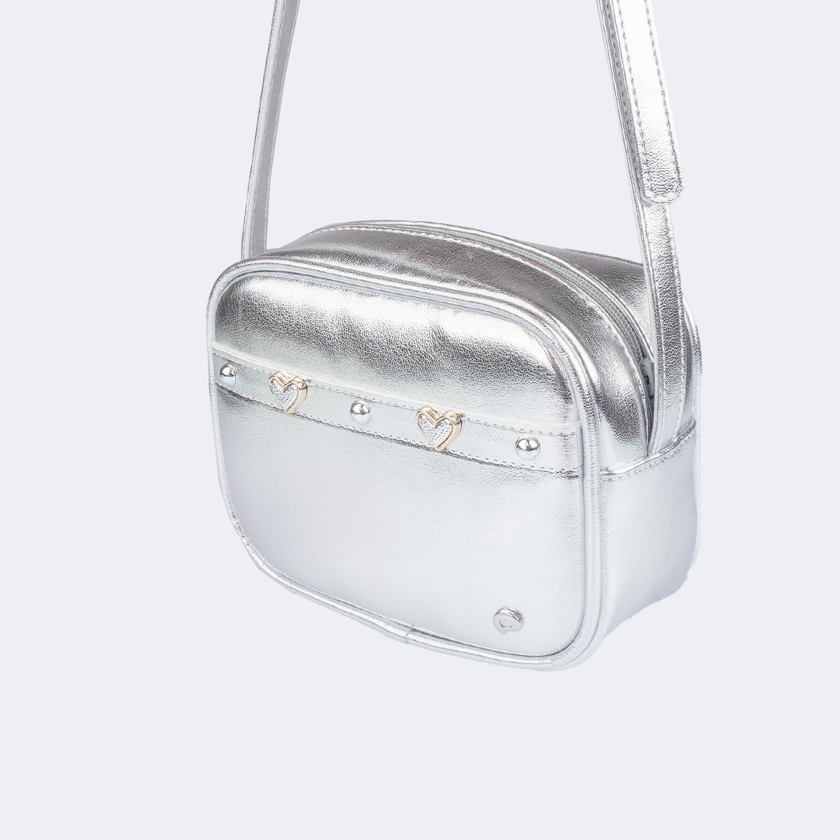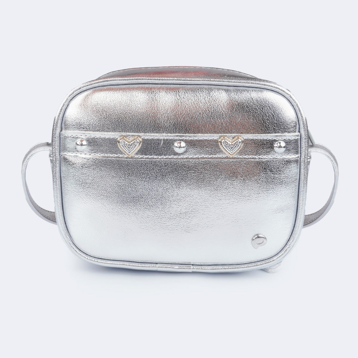 Bolsa Infantil Pampili Coração Metalizado Prata