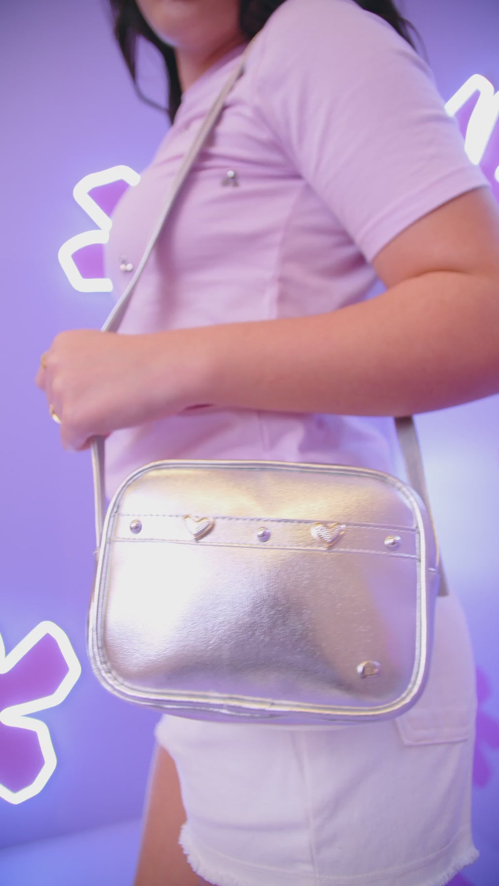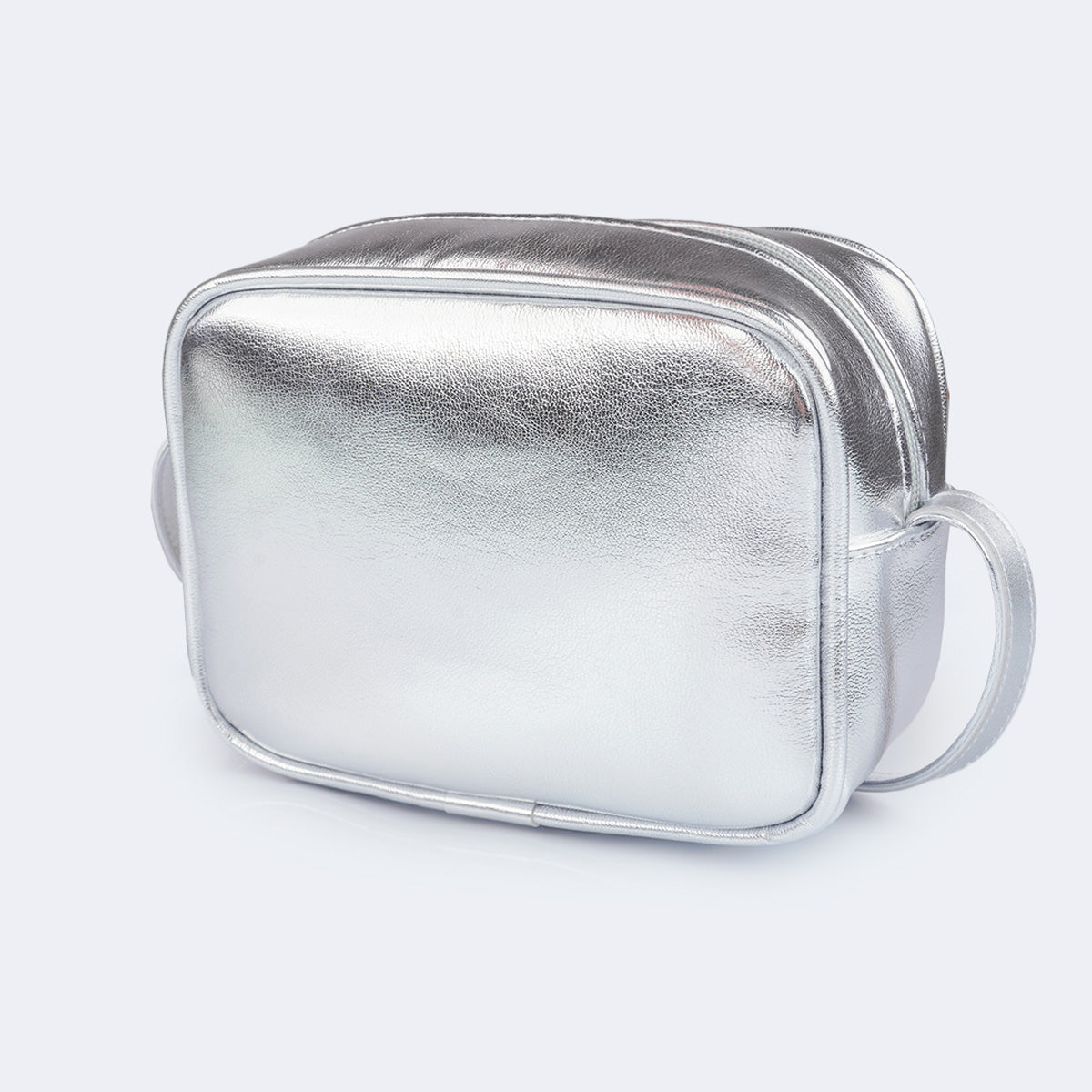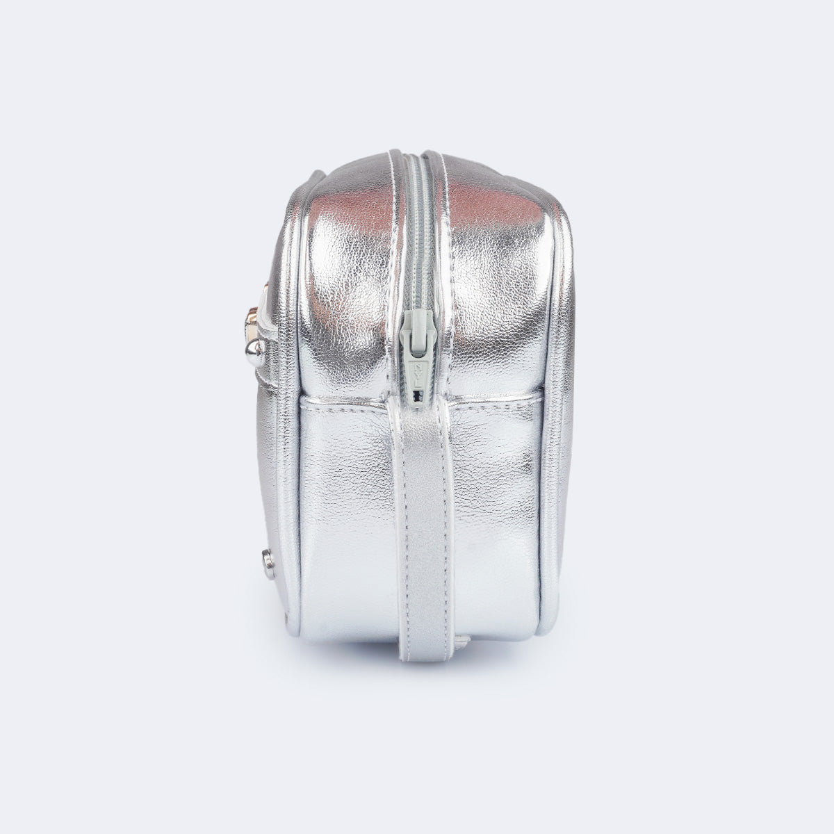 Estilo e brilho caminham juntos nesta bolsa prata metalizada pensada para meninas cheias de atitude!