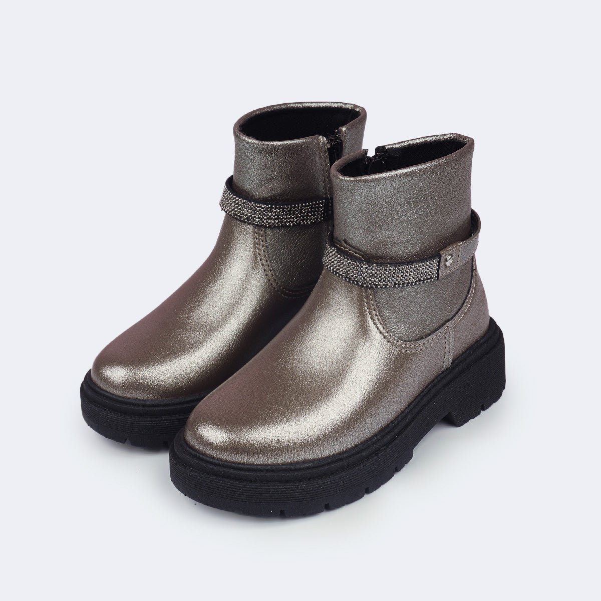 Bota Coturno Infantil Feminina Duda com Strass Grafite