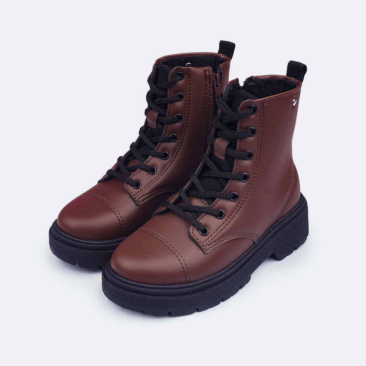 Bota Coturno Infantil Feminina Pampili Duda Marrom