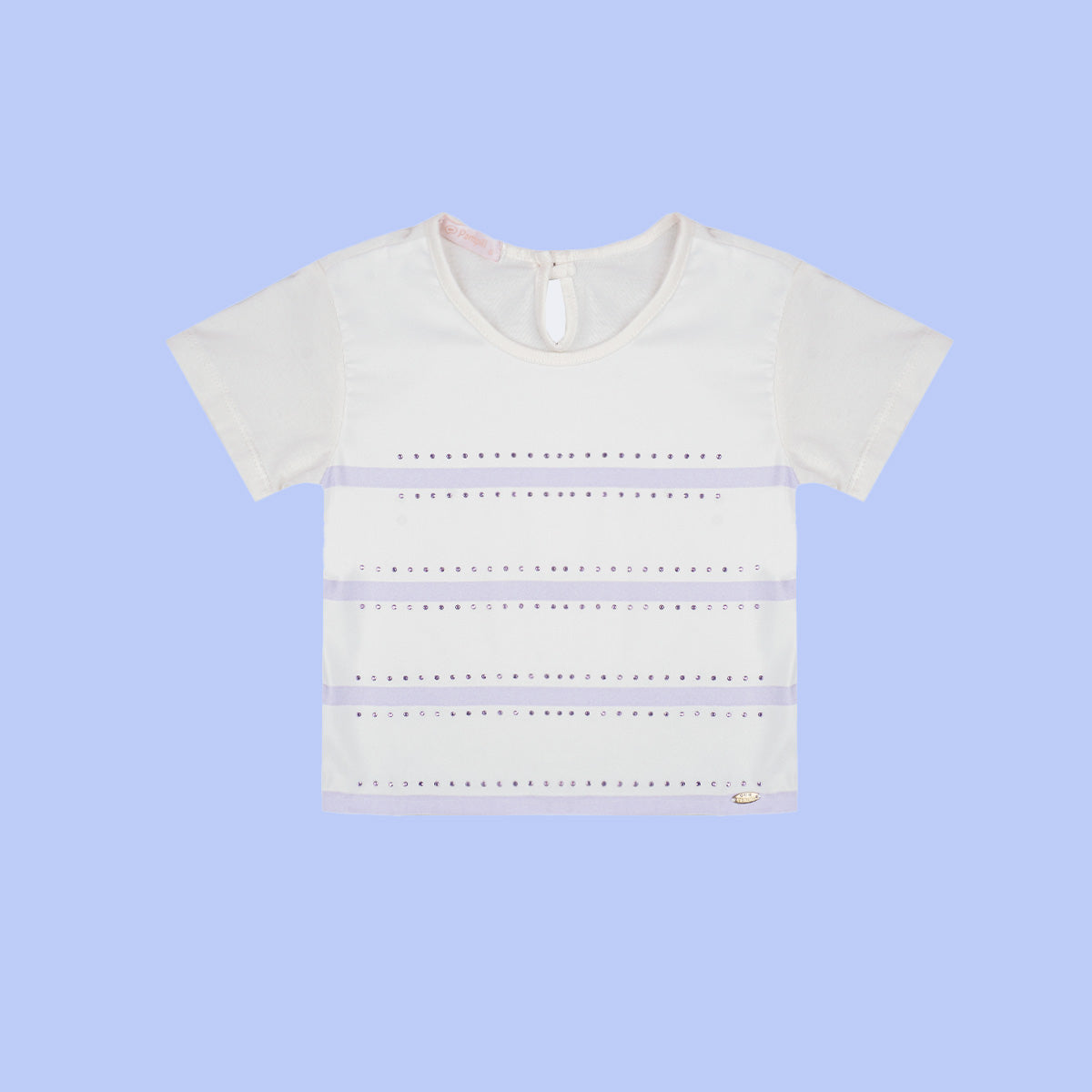 Camiseta Infantil Pampili Listras Lilás e Off White