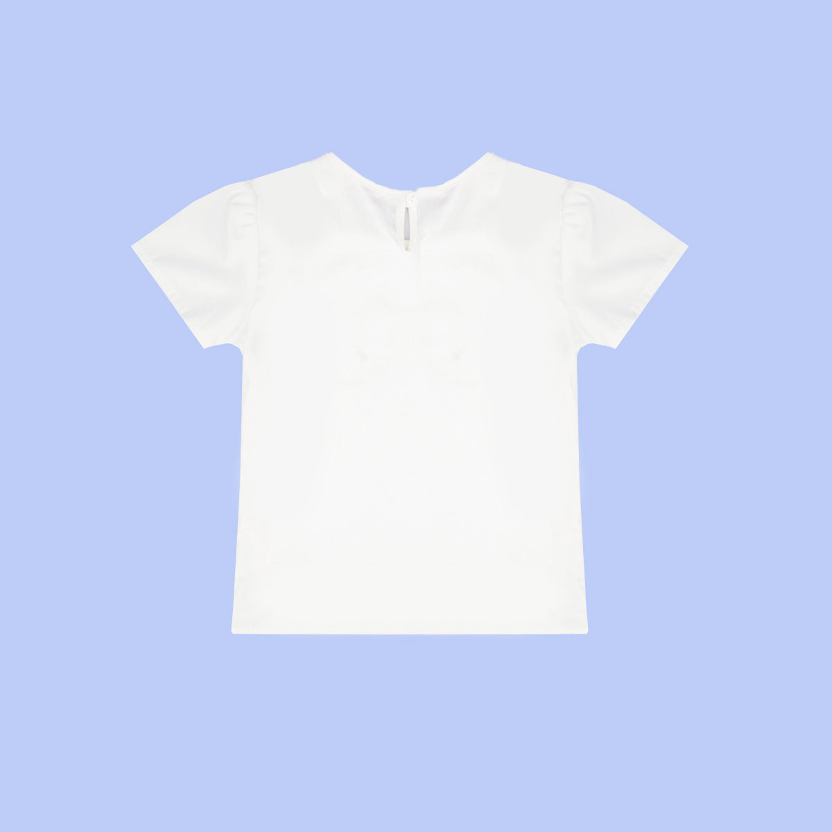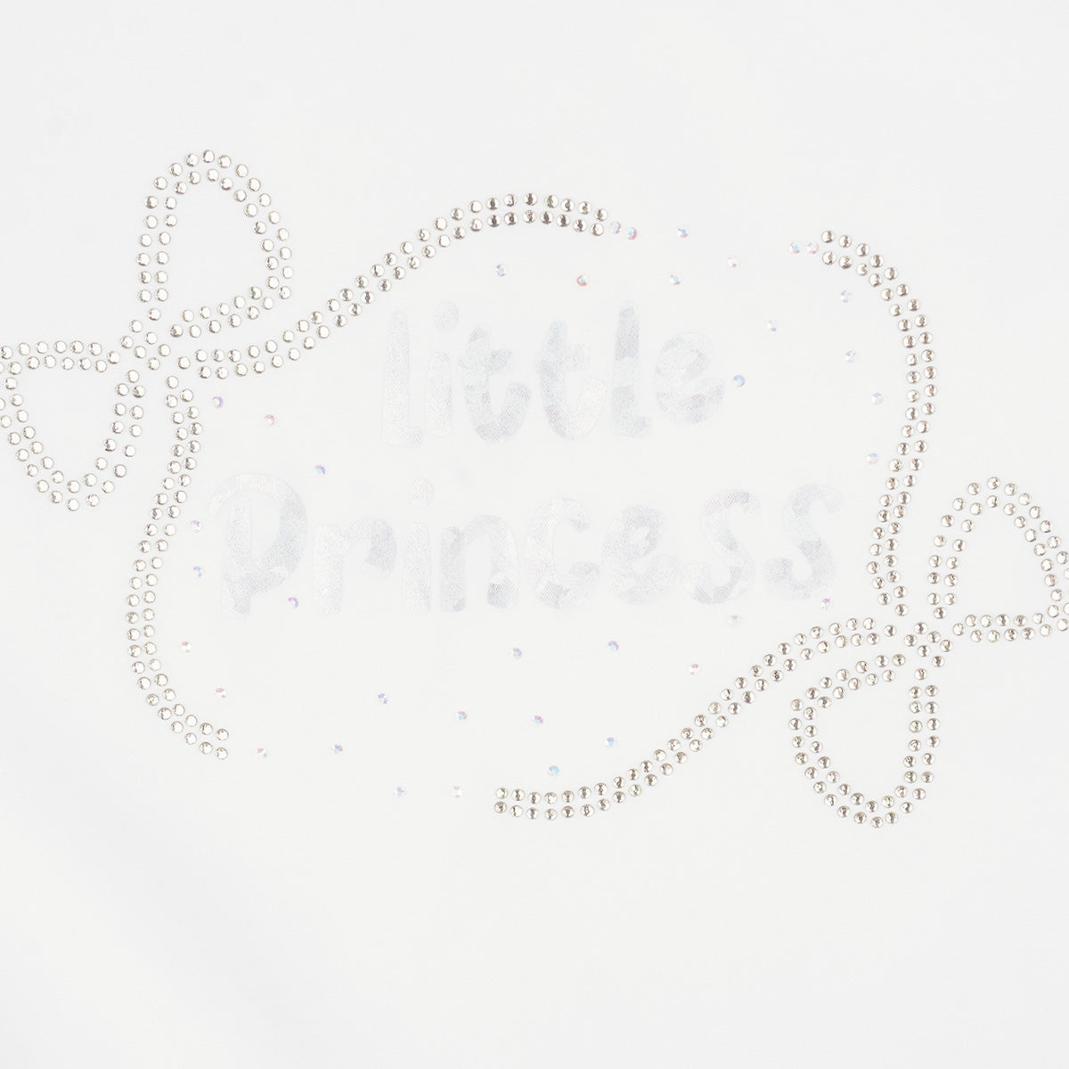 O aplique em strass formando o lettering “Little Princess” com laços delicados traz brilho e graça na medida certa. Possui fechamento com botão nas costas, facilitando o vestir e garantindo praticidade para o dia a dia.