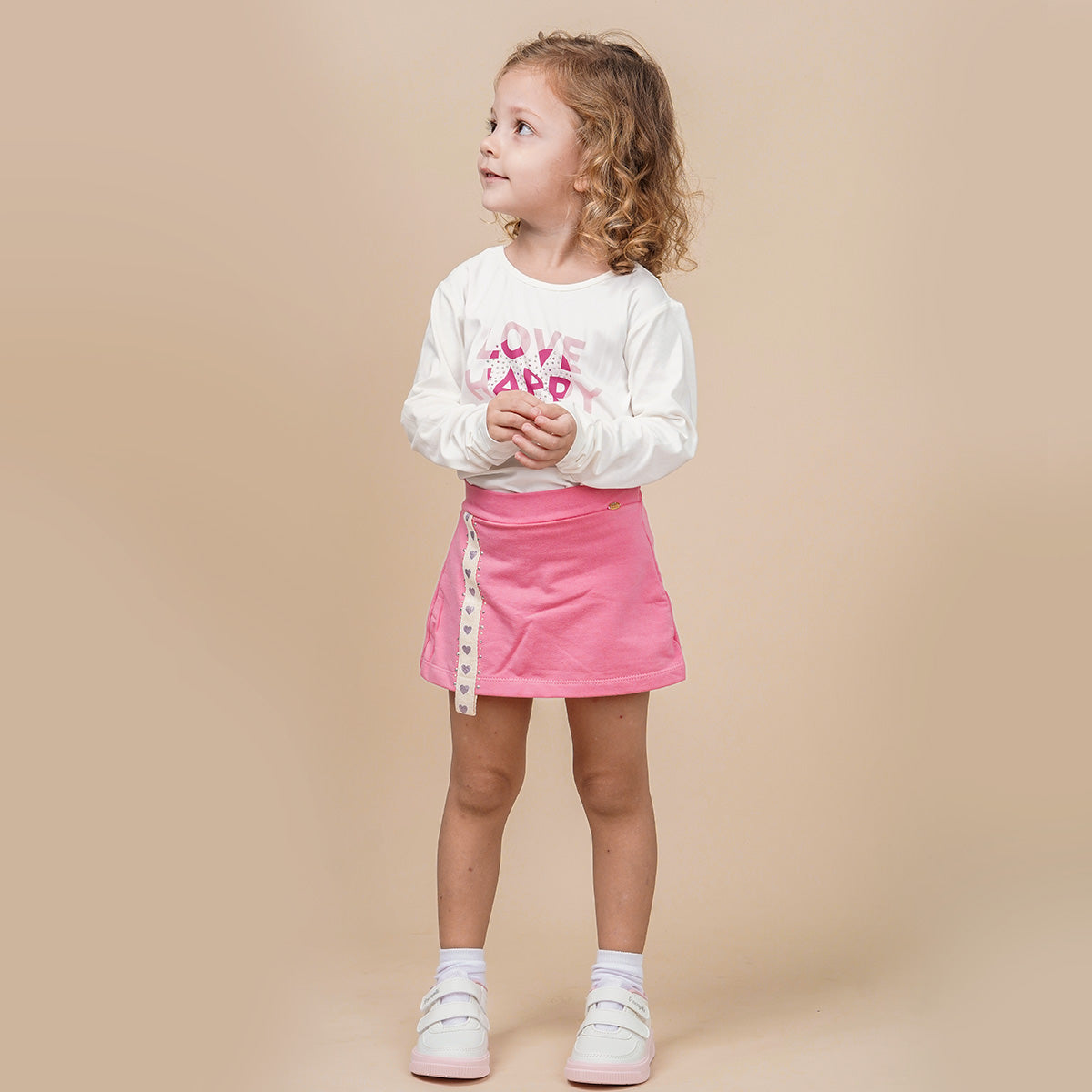 Camiseta Infantil Pampili Manga Longa Love Happy Shine Off White