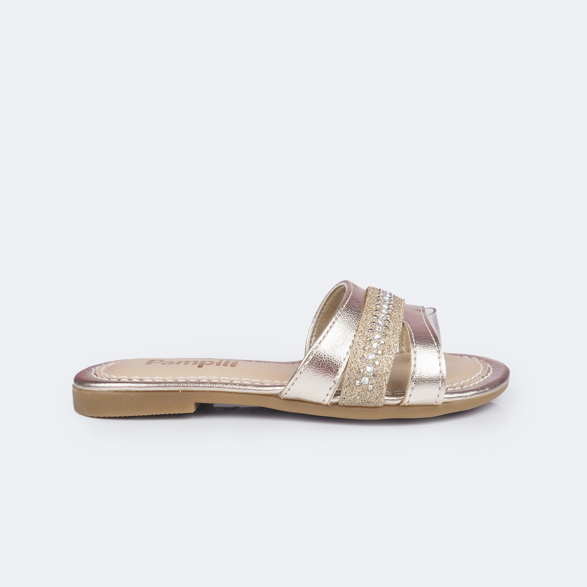 Sandália Rasteira Infantil Pampili Cherrie Hotfix Dourada