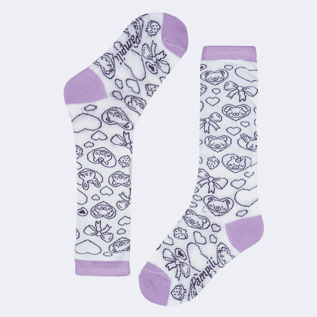 Meia Infantil Feminina 3/4 Pampili Bichinhos Branca Lilás