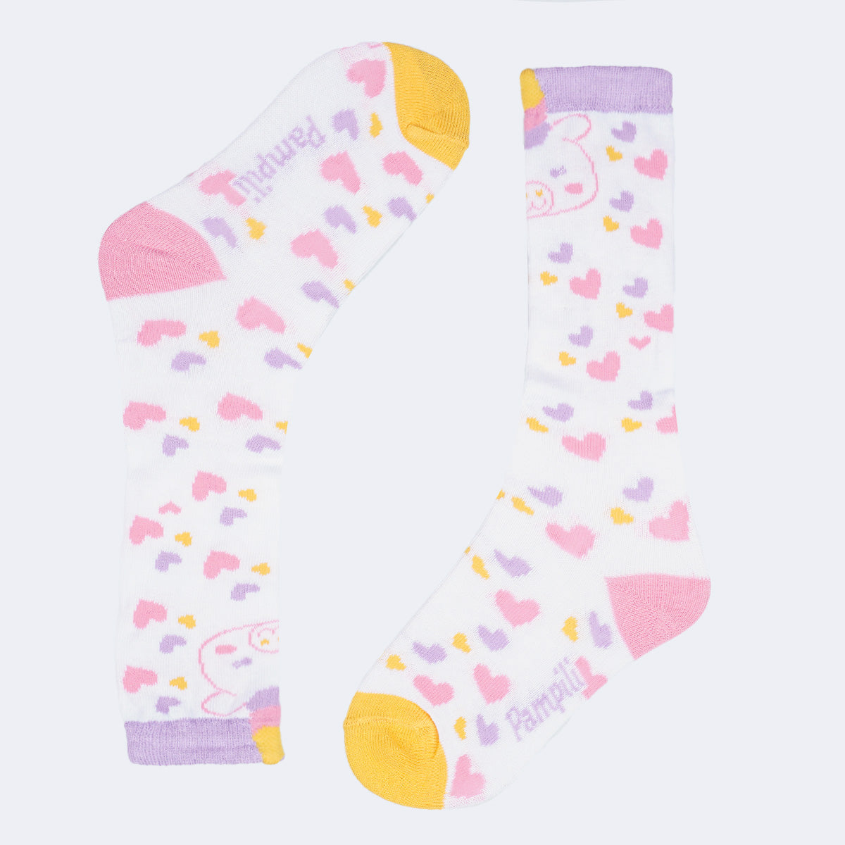 Meia Infantil Feminina 3/4 Pampili Mini Corações Colorida