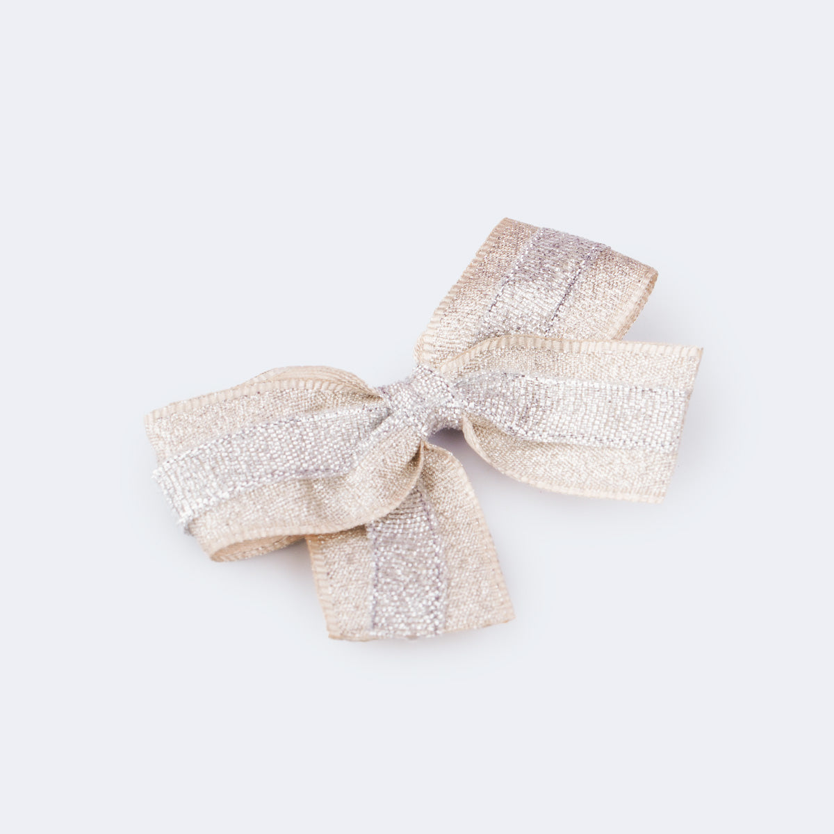 Presilha de cabelo infantil com laço em fita brilhante prateada, deixando os penteados com um charme especial. Bico de pato em metal, envelopado na parte de trás, resistente e prático para uso!