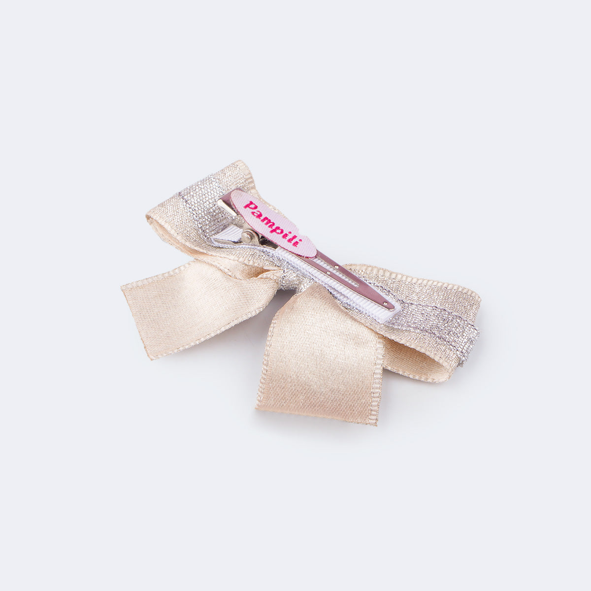 Presilha Bico de Pato Infantil Pampili com Laço Prata