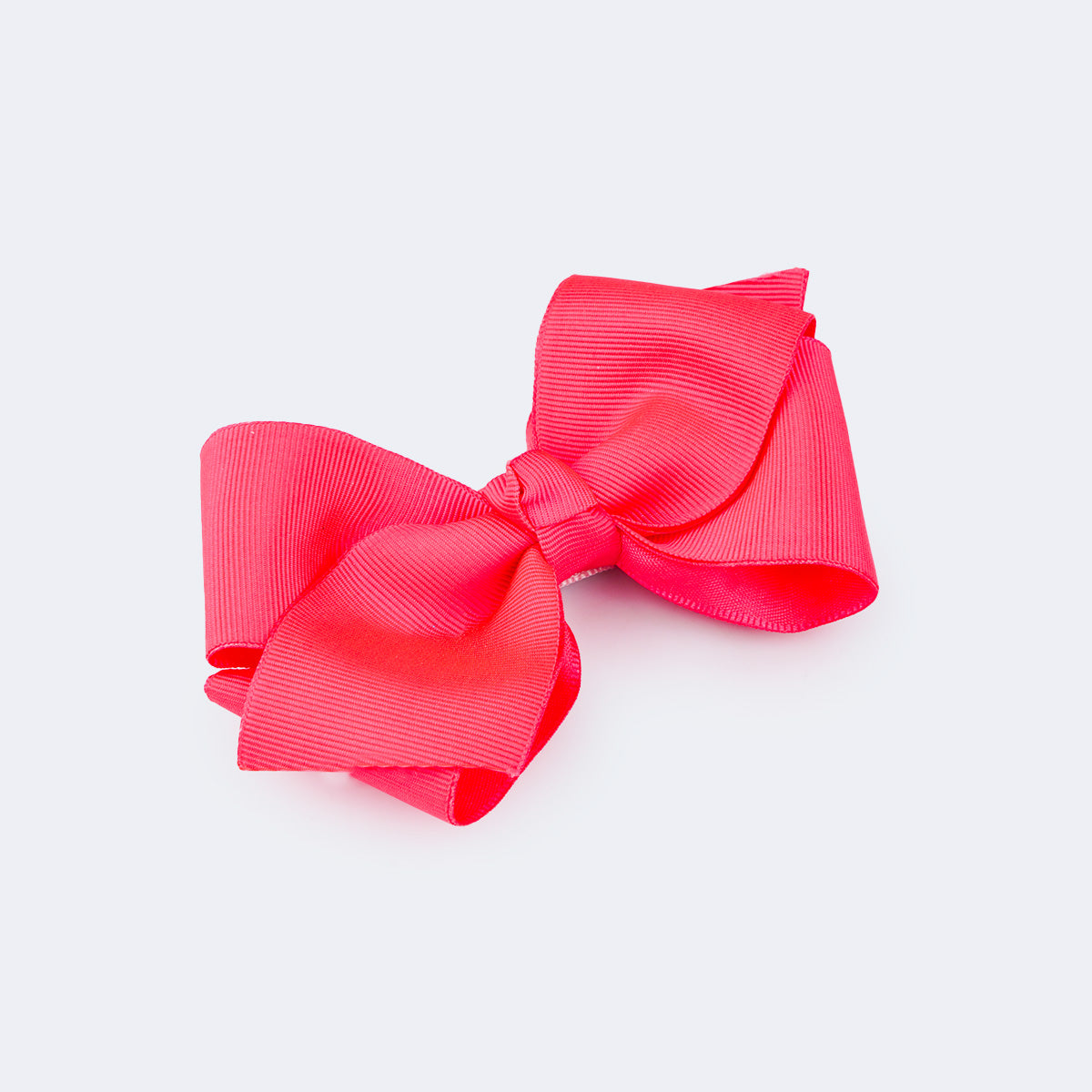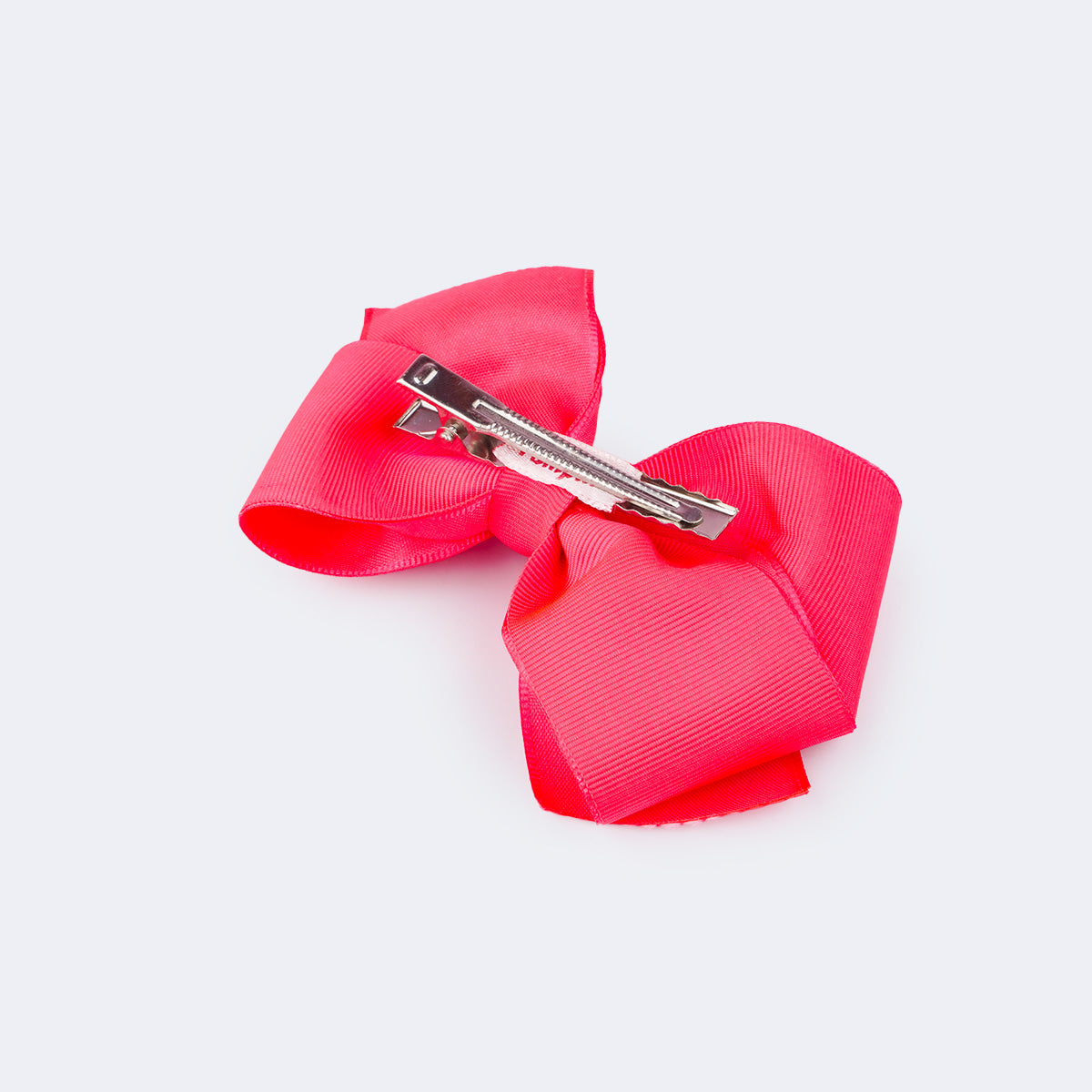 Presilha de cabelo infantil com laço estruturado de fita rosa neon. Hair clip para cabelo com bico de pato em metal, resistente, prático e super fácil de usar!