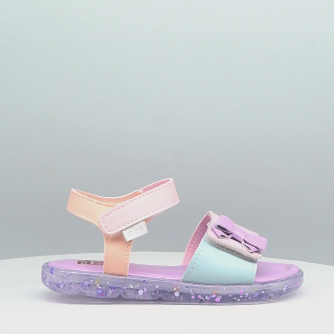 A sandália de led candy colors estilo papete com lacinho delicado e material glow é perfeita para meninas que amam brilhar. Seu solado transparente com luzes LED coloridas acendem a cada passo, despertando a imaginação das meninas e tornando o caminhar muito mais divertido.