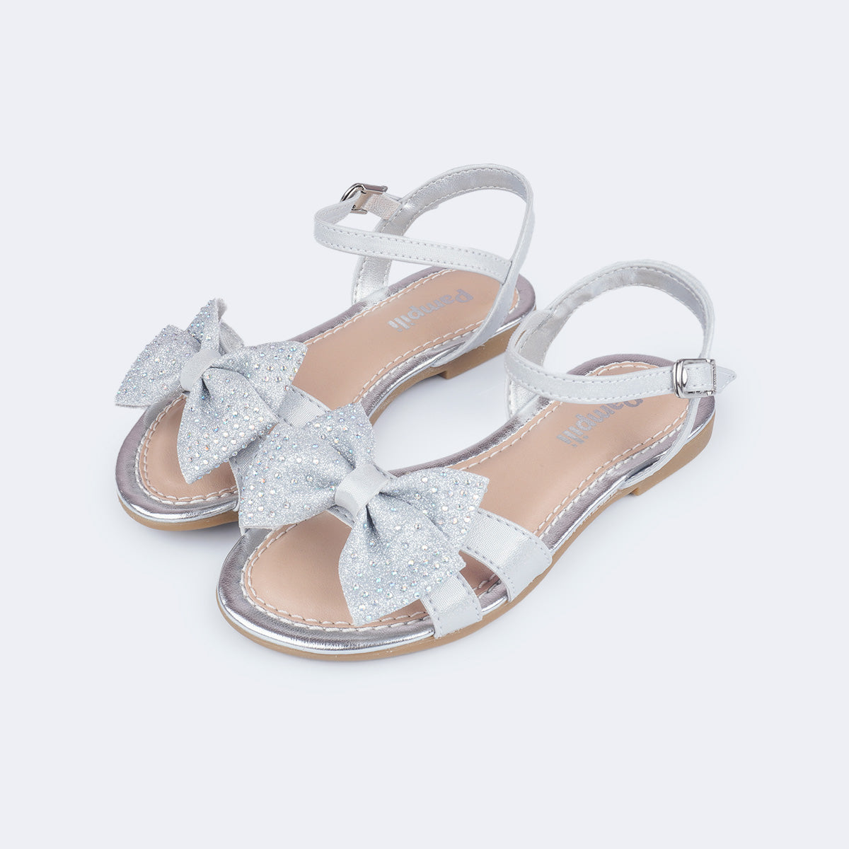 Sandália Infantil Pampili Cherrie Laço com Glitter Prata