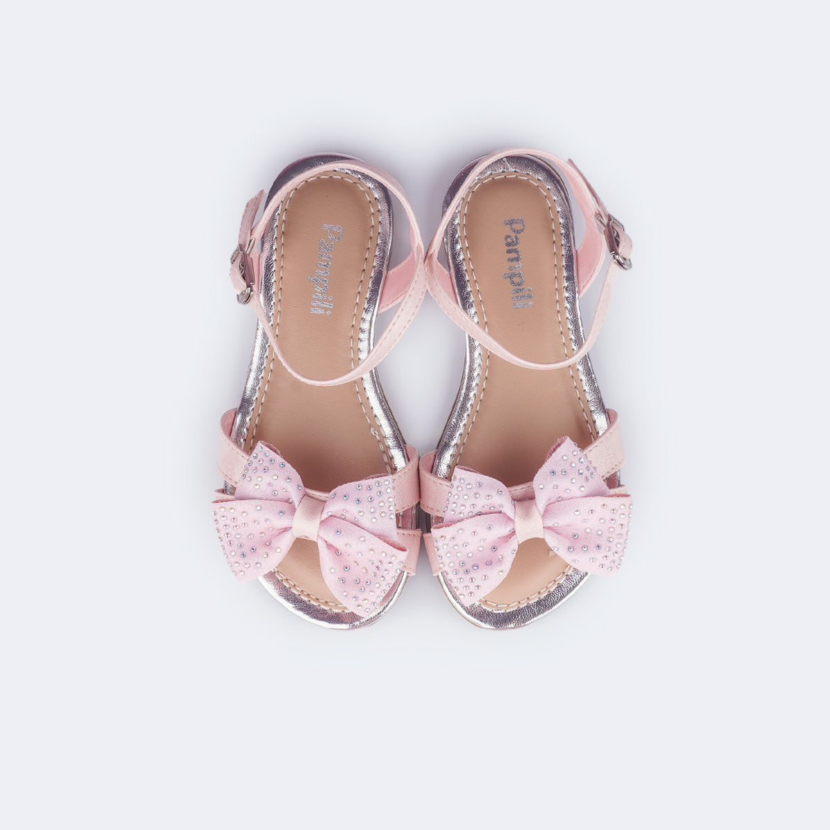 Sandália Infantil Pampili Cherrie Laço com Glitter Rosa Claro