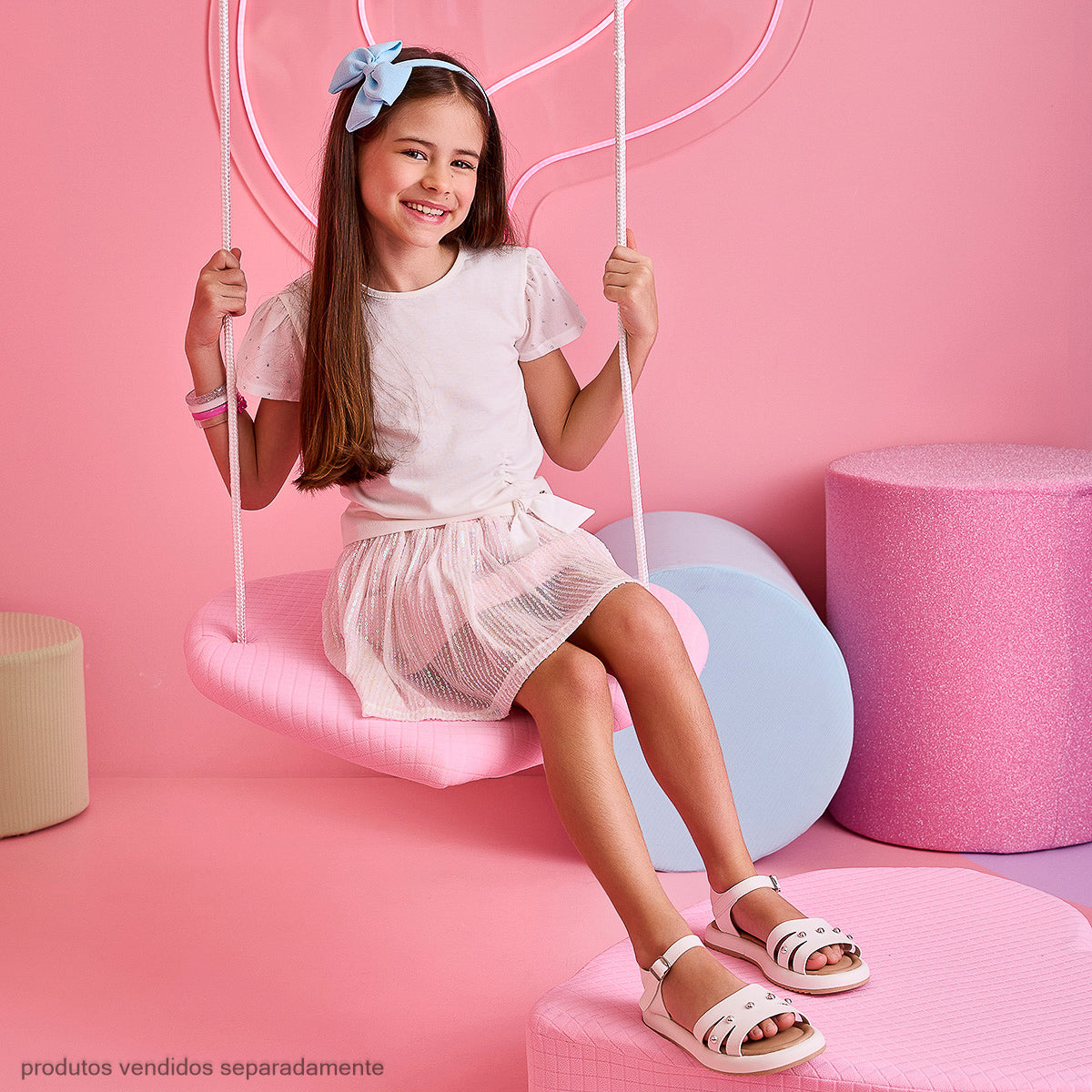 Para meninas que amam compor looks clean e modernos, essa sandália flatform infantil branca com esferas metálicas é a escolha ideal! O design monocromático, esta sandália é perfeita para composições delicadas.