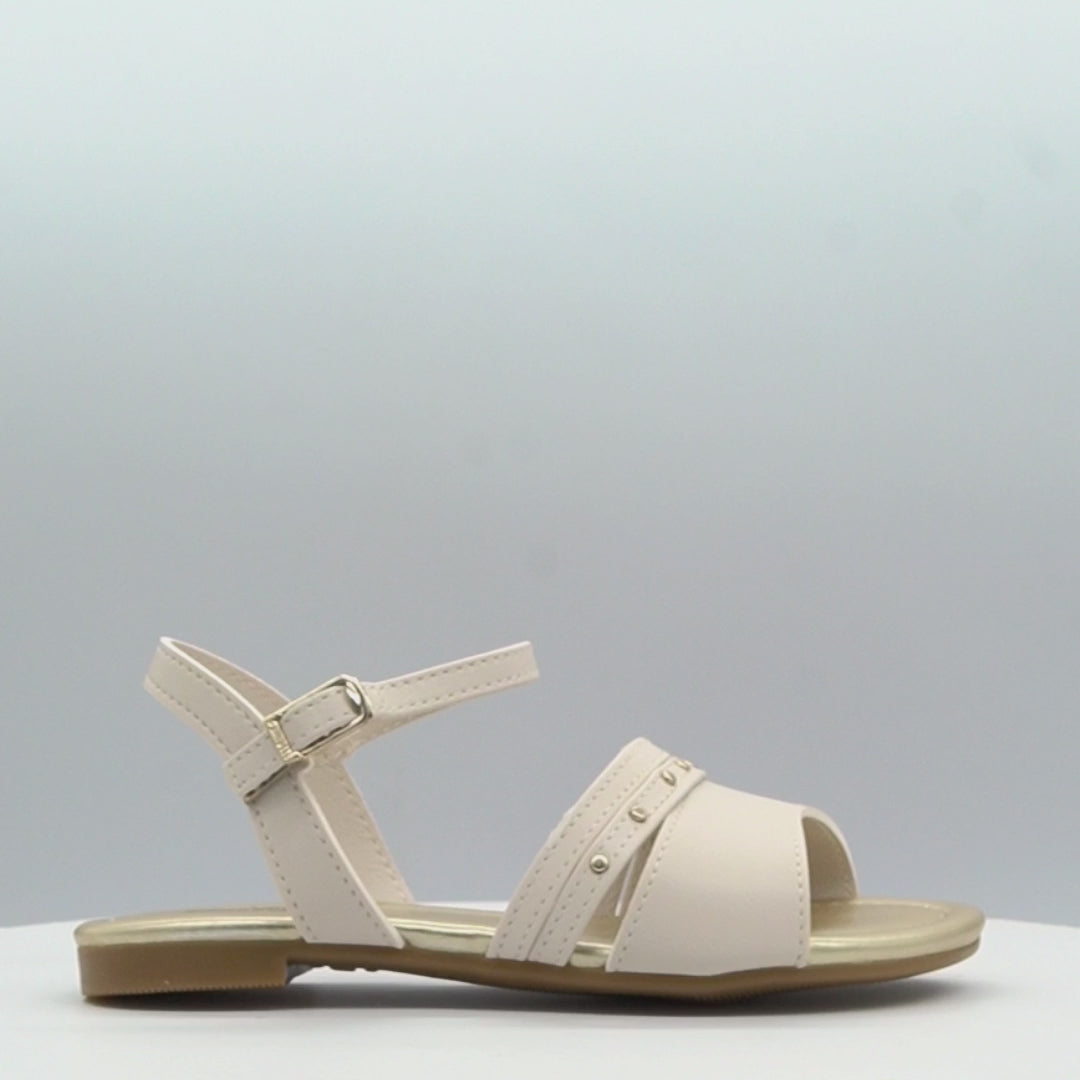 Sandália off White infantil com design clean e versátil, perfeita para passeios com amigos e família. Em tom neutro, traz tiras com mini apliques metálicos, garantindo um visual moderno e fácil de combinar com diferentes looks das meninas.