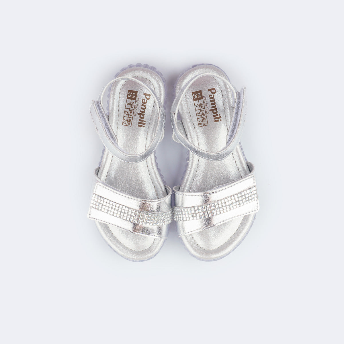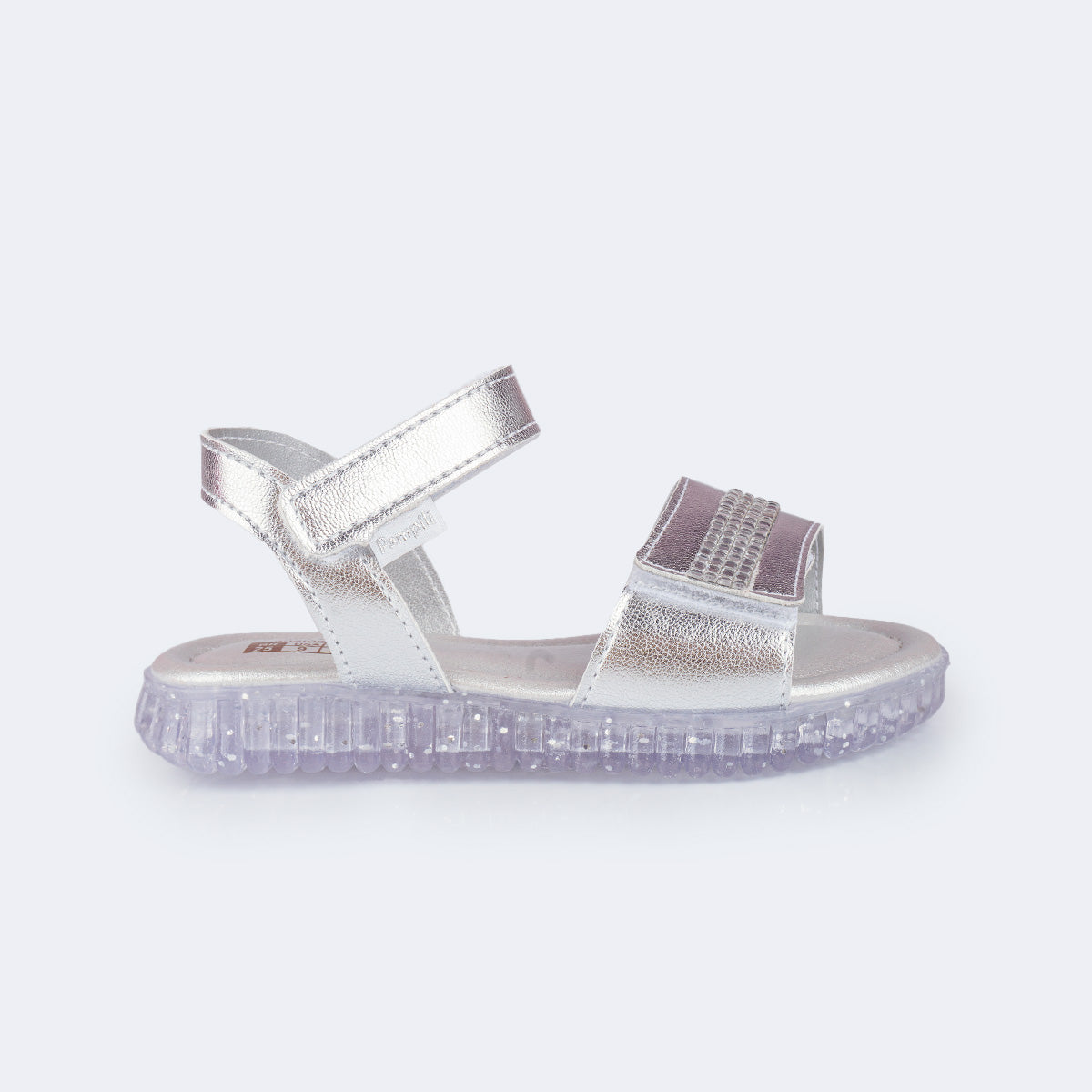 Pensada para as meninas que adoram um visual moderno com muito conforto, esta papete prateada combina o brilho metalizado com aplicação de cristais na tira frontal, criando um efeito cheio de personalidade. O design leve com palmilha anatômica acolchoada, garante bem-estar durante todo o dia — perfeito para acompanhar a rotina das meninas com estilo.
