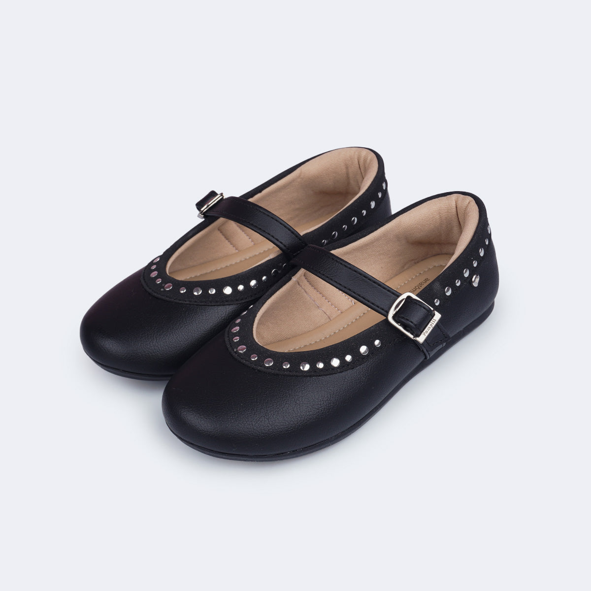 Para atualizar o visual das meninas, essa sapatilha preta infantil traz tachas prateadas contornando o modelo de bico arredondado, criando um efeito clássico repaginado para as produções mais arrumadinhas. O cabedal estruturado possui tira com fivela easy, sem pino, com ajuste firme e confortável.